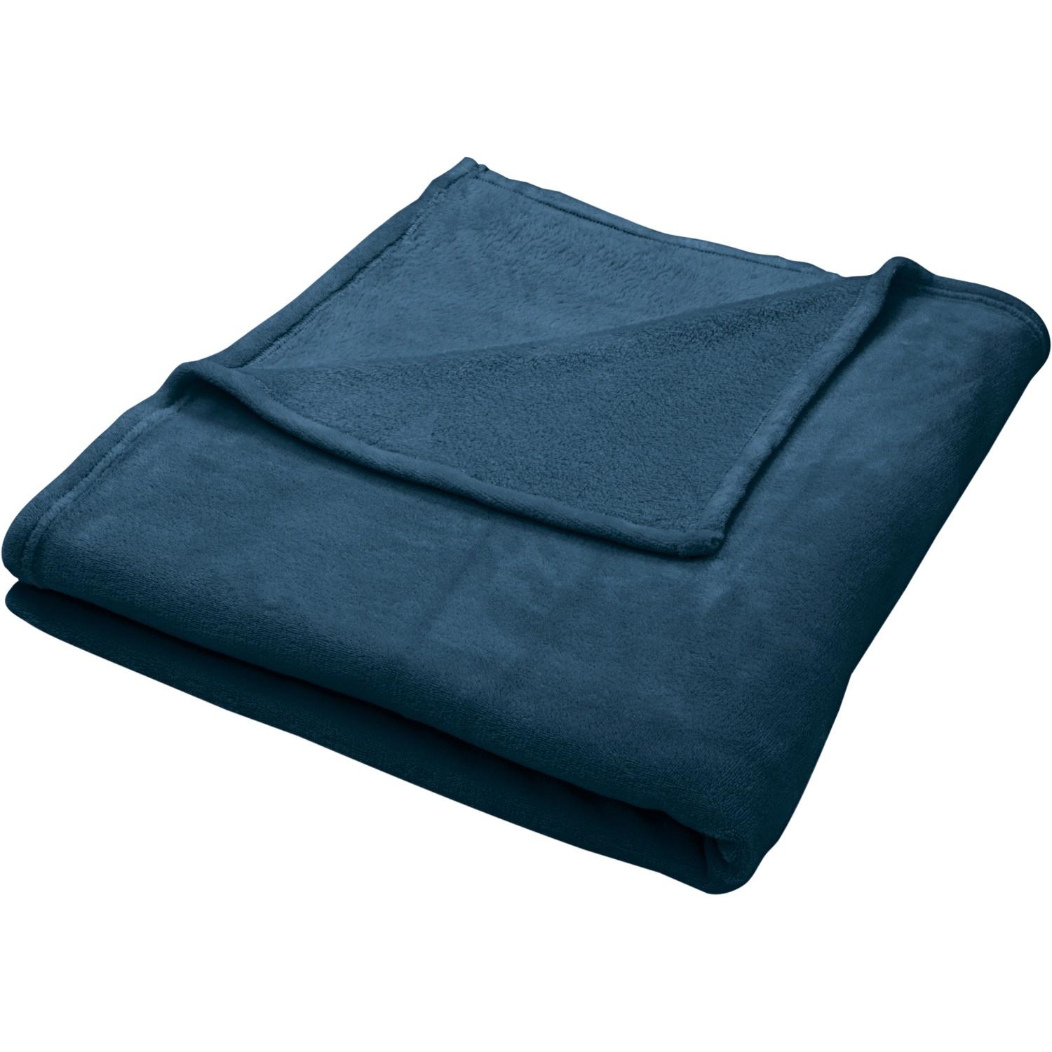 A kék színű, puha plüss pléd minden évszakban használható otthon vagy útközben is. A körbefutó láncöltés szép megjelenésről gondoskodik. A pléd 30 °C-on mosható, és 100% poliészterből készült. Mérete 130 cm x 160 cm.