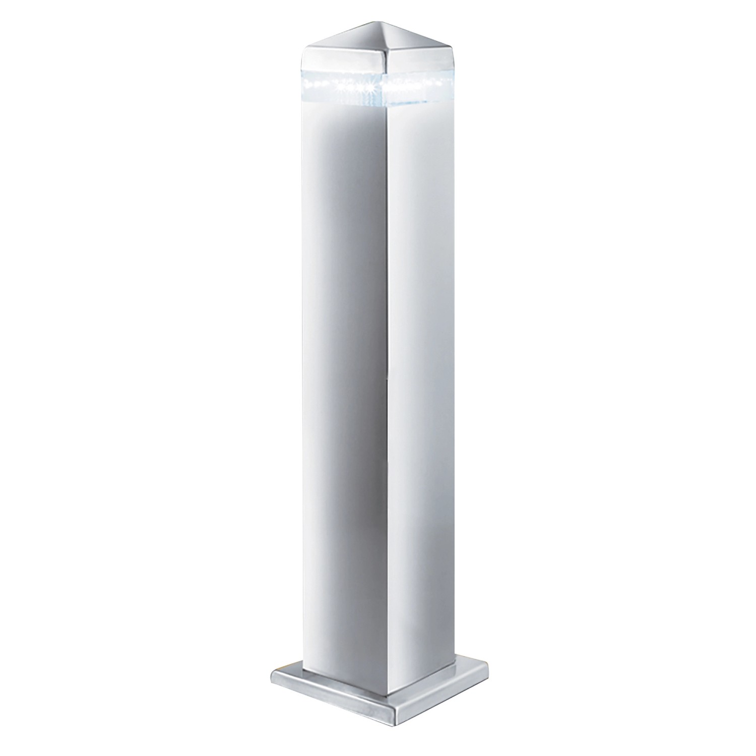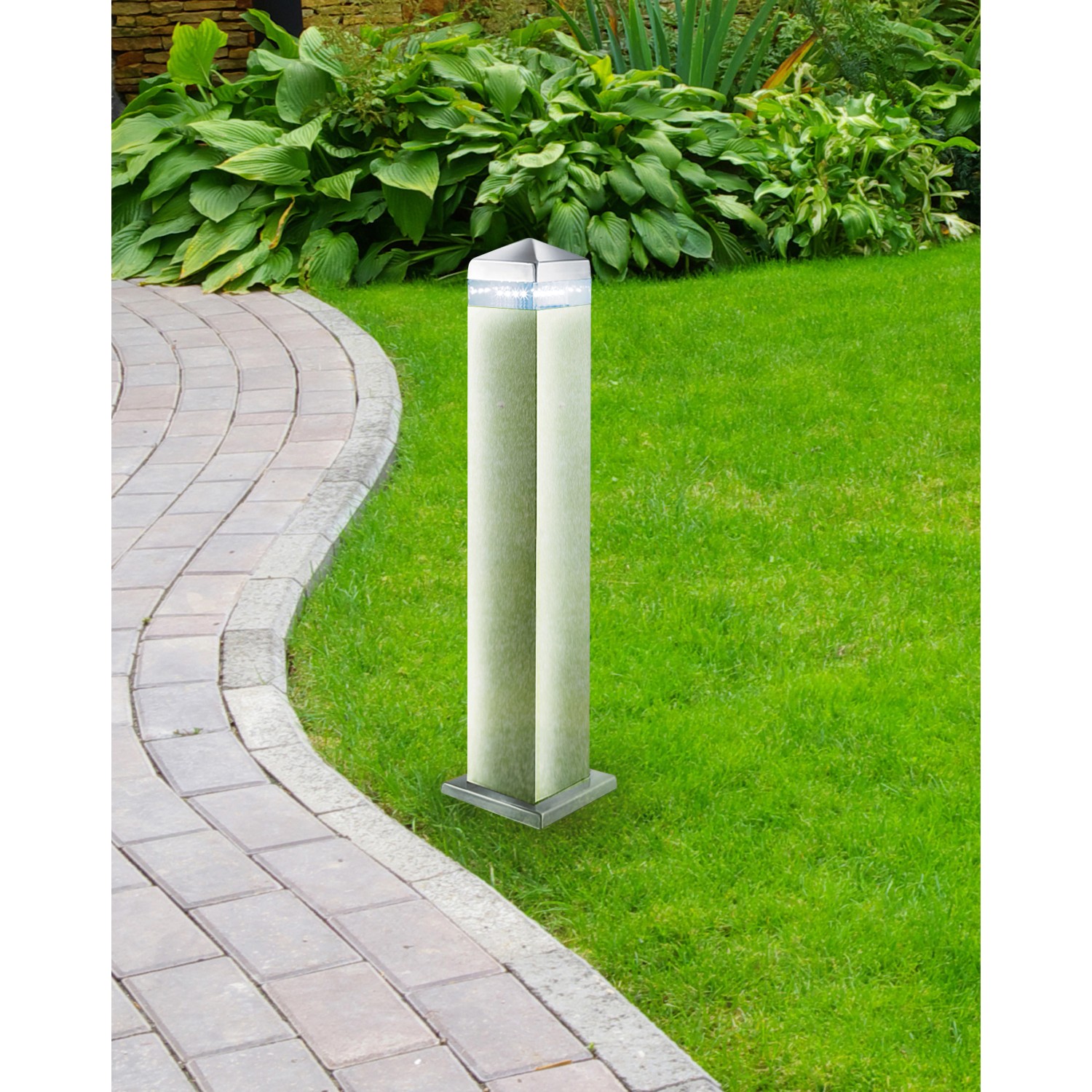 Ez az India kültéri oszlop 16 LED-es lámpával rendelkezik, és stílusos és praktikus módja a behajtók, utak és a kert megvilágításának. Az elegáns, rozsdamentes acélból készült szerelvény szögletes élekkel és csúcsos tetejével rendelkezik, és egy keskeny, 16 LED által megvilágított fénysávot tartalmaz, amely a legújabb energiatakarékos LED-technológiát használja. A lámpa IP44-es besorolású és teljesen fröccsenésálló, így védelmet nyújt az időjárás viszontagságai ellen. A LED-ek akár 75%-kal kevesebb energiát fogyasztanak, és akár 20-szor hosszabb ideig tartanak, mint az izzók.