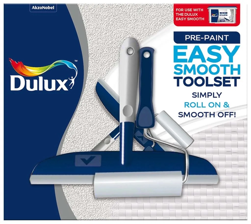 A Dulux EasySmooth szerszámkészlet speciálisan a Dulux Pre-Paint Easy Smooth felhasználásra kész glett könnyű és gyors felviteléhez kifejlesztett henger és simító. A célszerszámok használatával egyszerűbb és kényelmesebb a festésre kész, tökéletesen sima felületek kialakítása. Az EasySmooth henger különleges műanyag hab anyagának köszönhetőn minden eddiginél egyszerűbb az anyag felvitele és egyenletes elterítése. Az Easy Smooth simítót formázott, kellemes tapintású markolata és rugalmas éle a sima és csíkmentes felületek kialakításának ideális eszközévé teszi.
