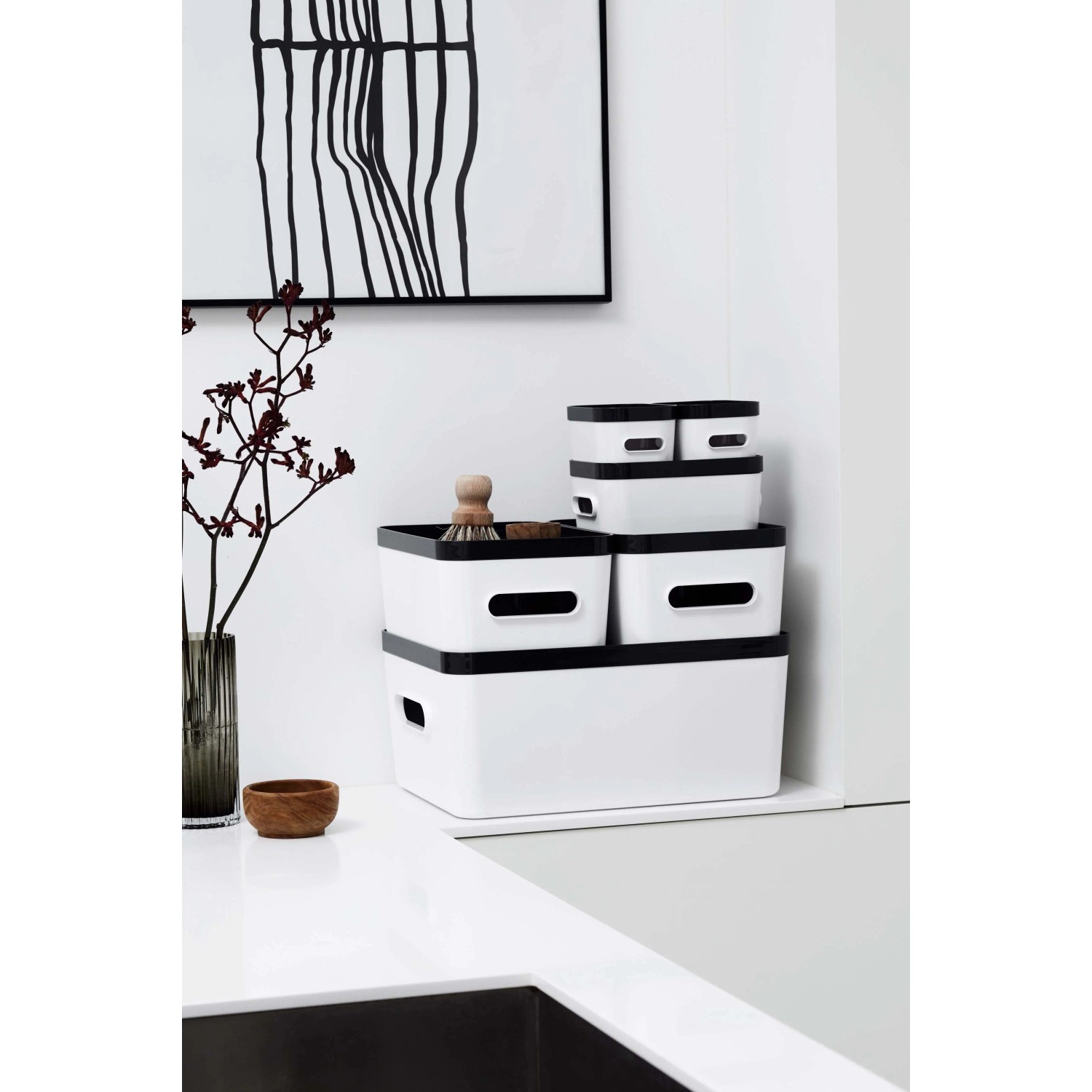 Fedél a SmartStore Compact L fehér színű dobozhoz. A fedél alátétként vagy polcként is használható különböző tárgyak számára. Kiváló minőségű anyag, amely könnyen tisztítható kézzel vagy mosogatógépben.