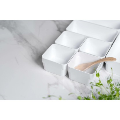 A Compact termékcsalád a moduláris tárolórendszerek sorozata. A Sort 10x10 rendszerező a legkisebb tárgyak, pl. kis konyhai eszközök, sminkek és piperecikkek, legkisebb játékok, kézműves anyagok és irodai cikkek tárolására alkalmas. Minden Compact termék kiváló minőségű anyagból készül, amely könnyen tisztítható kézzel vagy mosogatógépben. Finnországban készült élelmiszeripari minőségű SAN műanyagból, 20%-ban megújuló alapanyagokból (az ISCC Mass Balance-en keresztül igazolva).