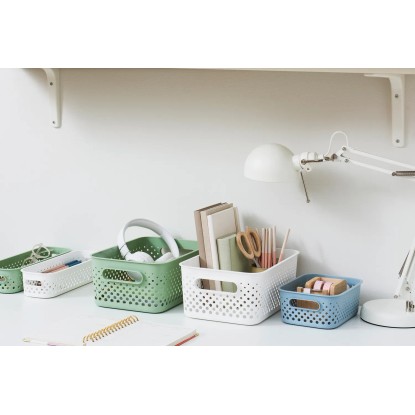Modern tárolókosár, amely bármelyik helyiségben használható. A könnyű és szellős kialakítás a kosarakat a mindennapi tárolás elengedhetetlen kellékévé teszi. A Slim kosár tökéletesen alkalmas kis és hosszúkás tárgyak, például tollak és irodai anyagok, kézműves anyagok, kis játékok tárolására. A Slim méretű kosár moduláris, M és S méretű. A kosarak a könnyű felemelés érdekében nyílással rendelkeznek, és különböző modern színek közül lehet választani. Svédországban készült, tartós műanyagból.