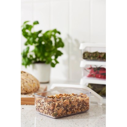 A légmentesen záródó SmartStore tároló szárazon és frissen tartja az élelmiszereket. Az átlátszó fedélnek köszönhetően a konyhai fiók tartalma közvetlenül látható.