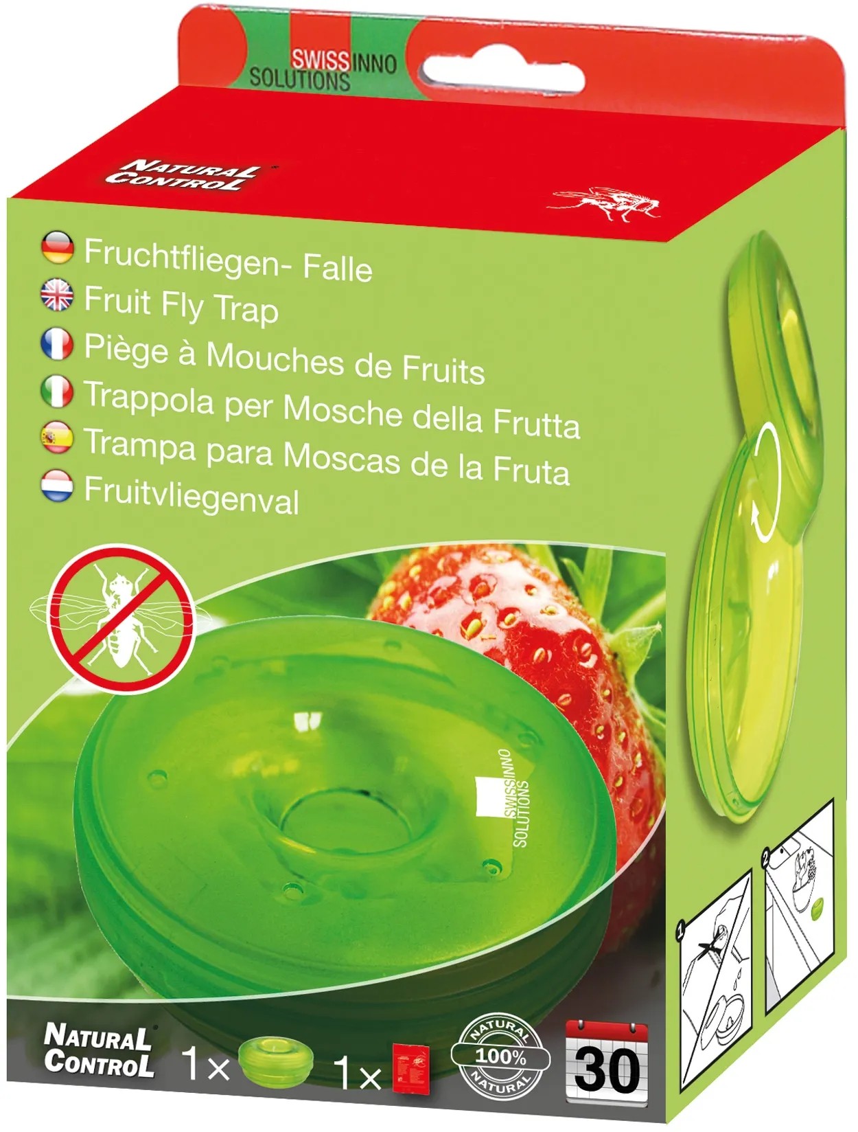 A Swissinno Natural Contral gyümölcslégycsapda egy speciális fejlesztésű csalétek, amely ellenállhatatlanul vonzza a rovarokat/gyümölcslegyeket. Az átlátszó borítás és a természetes fény a csapdába csalja a rovarokat. A strapabíró műanyag csapda két részből áll, és bármikor újra használható.