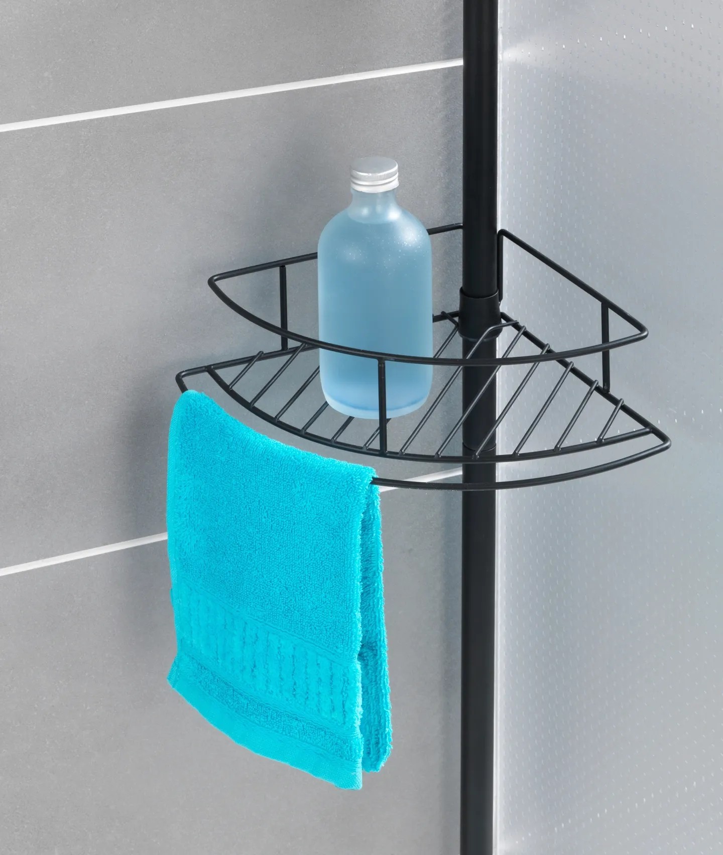 A kiváló minőségű, rozsdamentes acélból készült, divatos, matt fekete színű Wenko Dolcedo teleszkópos zuhanypolc univerzálisan használható zuhanykabinokban, fürdőkádakban és a szoba sarkaiban.