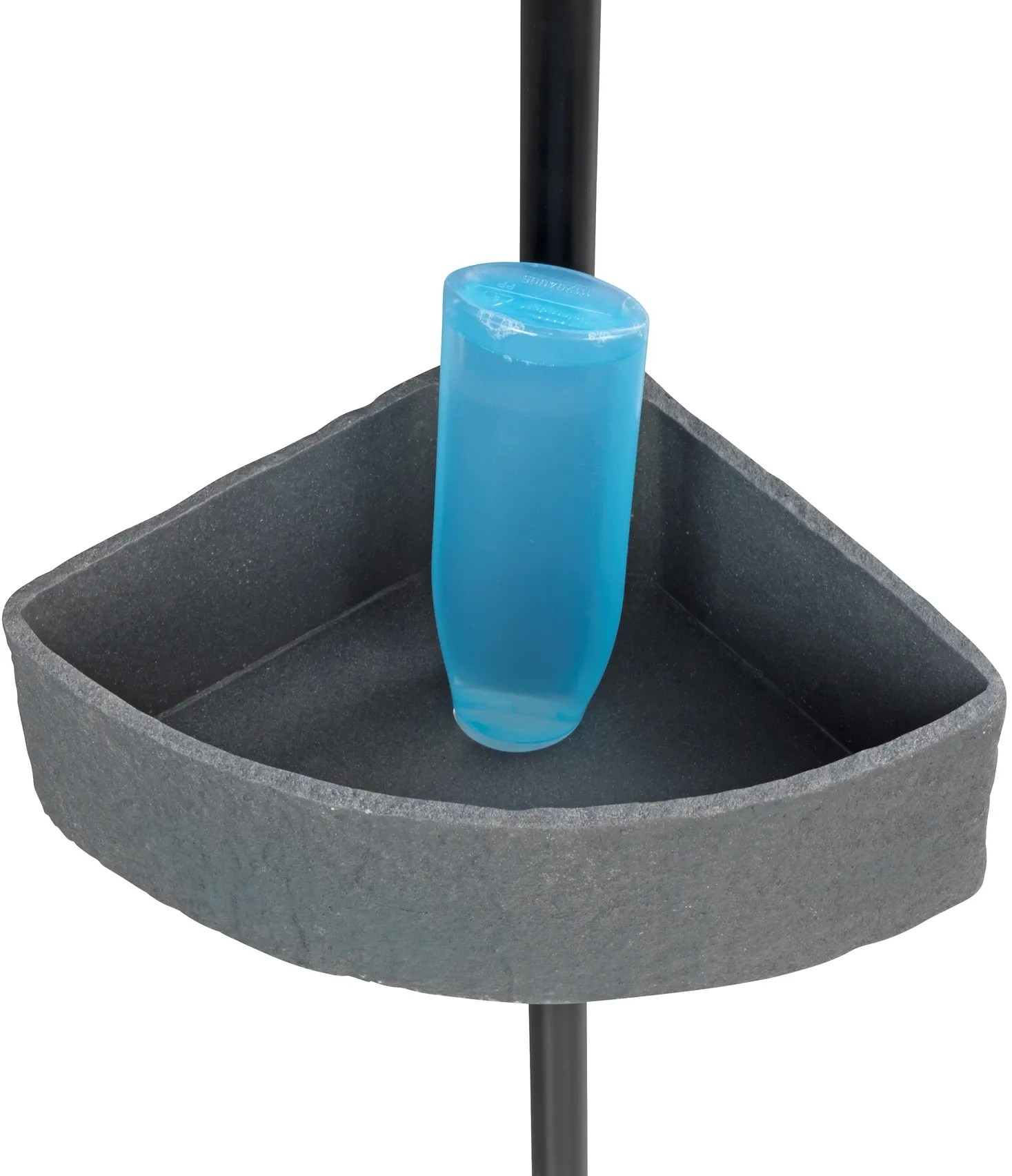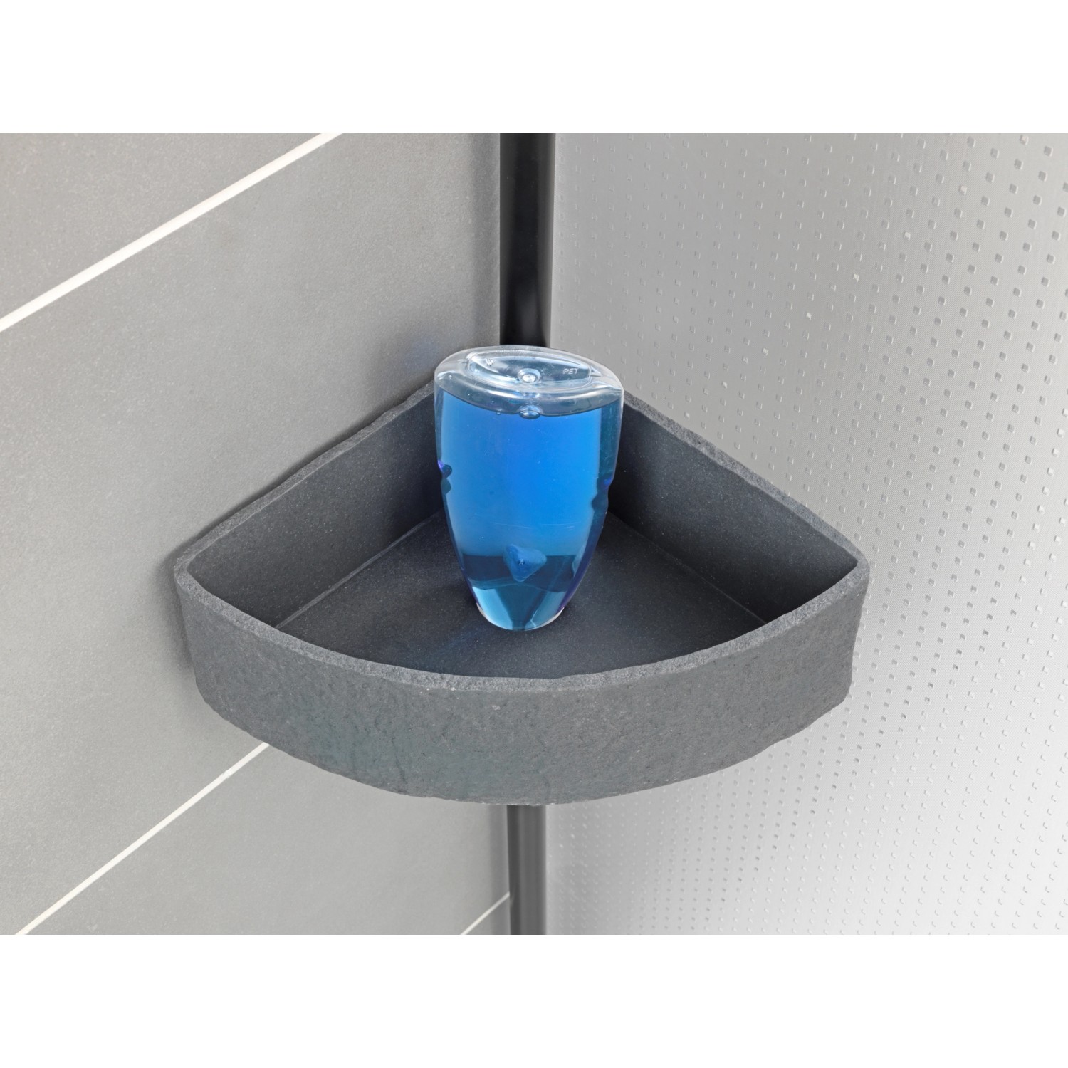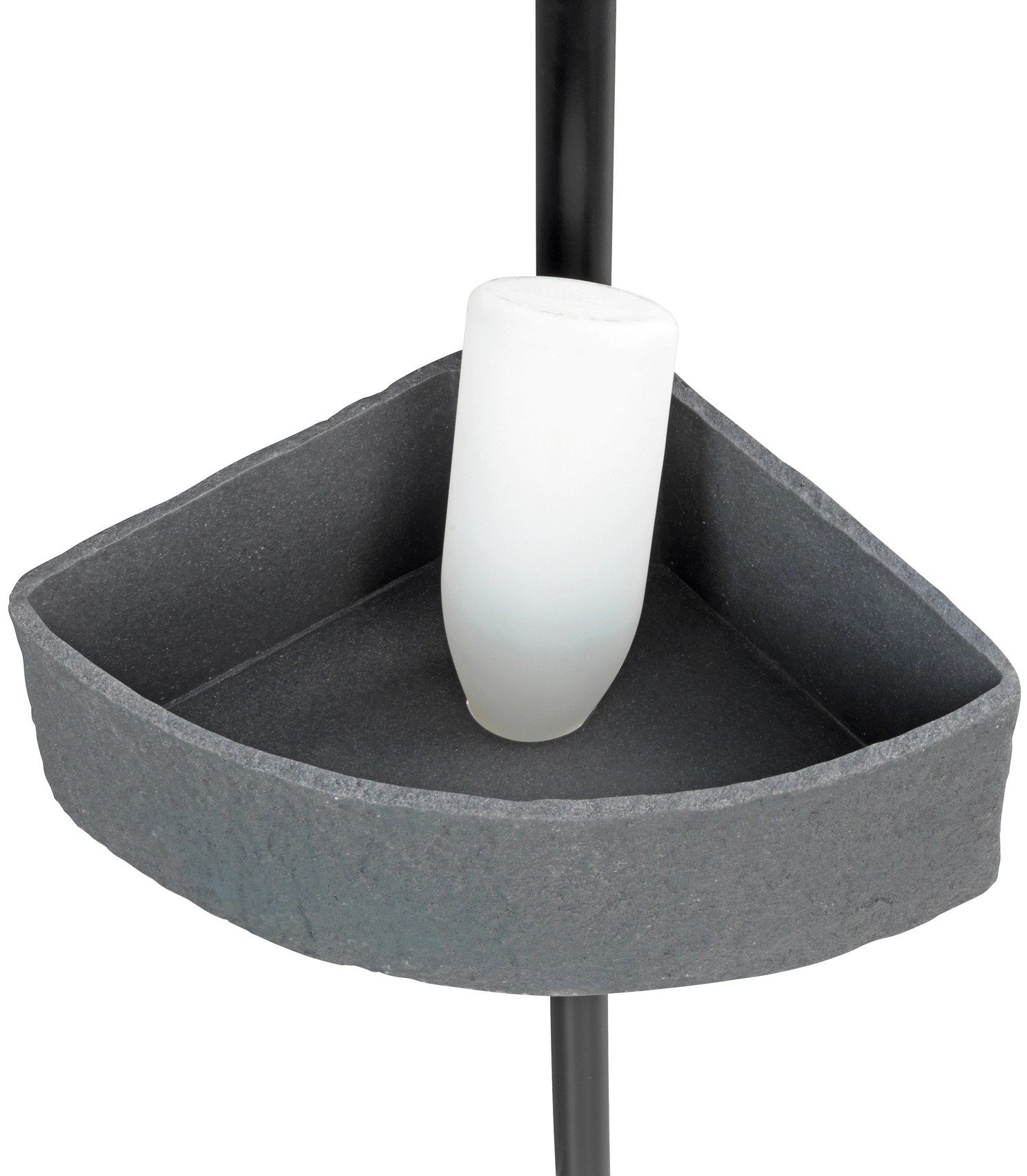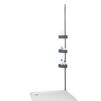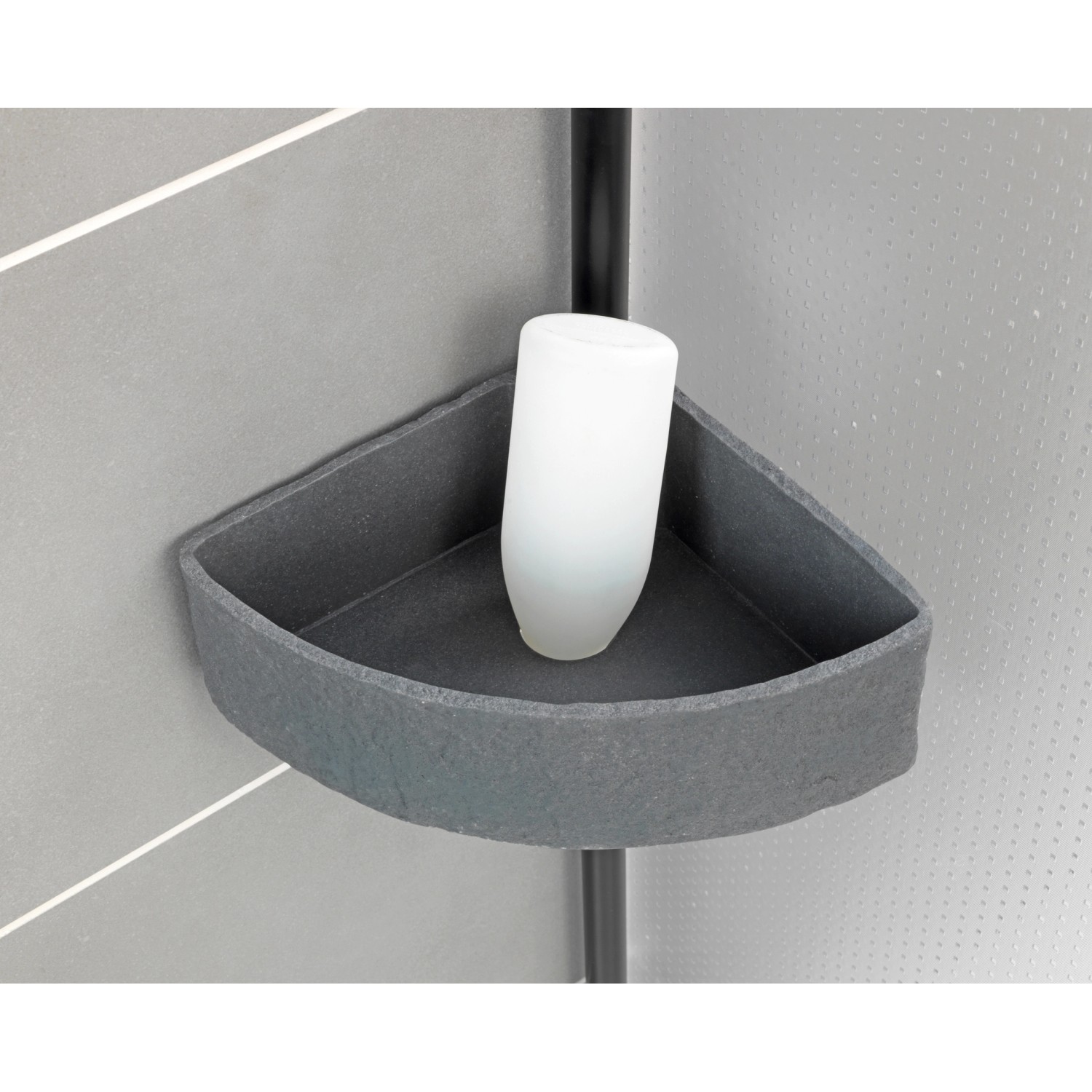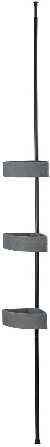 A kiváló minőségű polirezin anyag különleges megjelenést kölcsönöz természetes kő megjelenésének. A rozsdamentes acélból készült, fekete színű, kihúzható teleszkópos nyél egyszerű kialakítása egyszerű hangsúlyt ad a sarokpolc összképének. A tartós anyagnak köszönhetően sokáig élvezheti ezt a hasznos kiegészítőt. A 28 cm x 20,5 cm x 275 cm-es praktikus méreteknek köszönhetően a teleszkópos polc zuhanykabinokba, kádsarkokba vagy a fürdőszobába is illeszkedik.