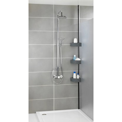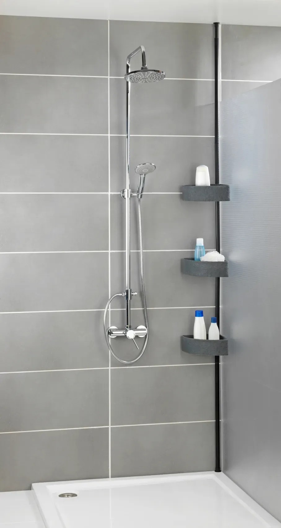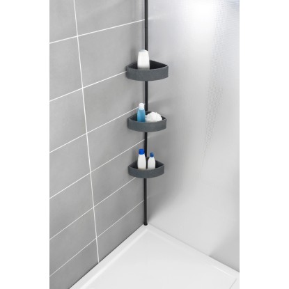 A lenyűgözően kifinomult Villata teleszkópos sarokpolc vizuálisan és funkcionálisan is feldobja a fürdőszobát vagy a többi helyiséget. A teleszkópos polc három szürke színű tárolókosárral rendelkezik, és egyenes kialakításának köszönhetően még helytakarékos is.