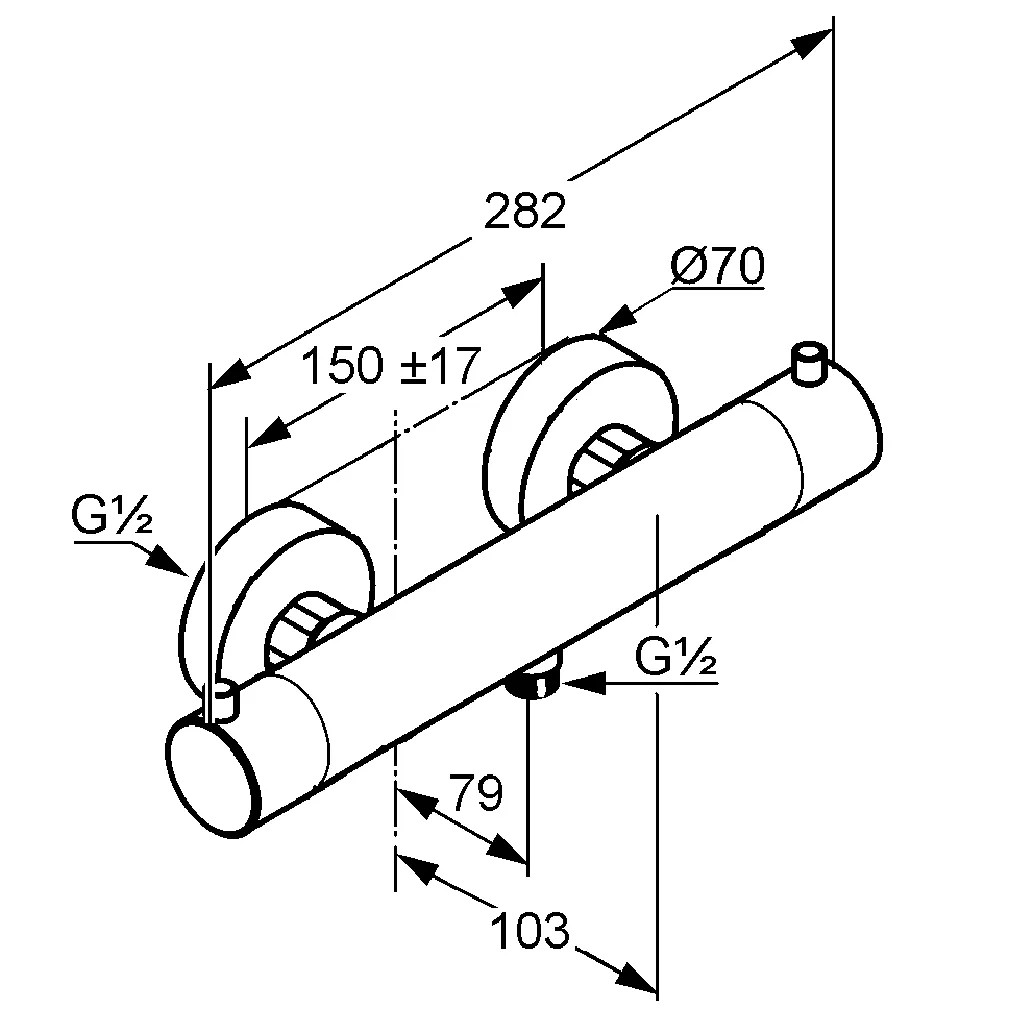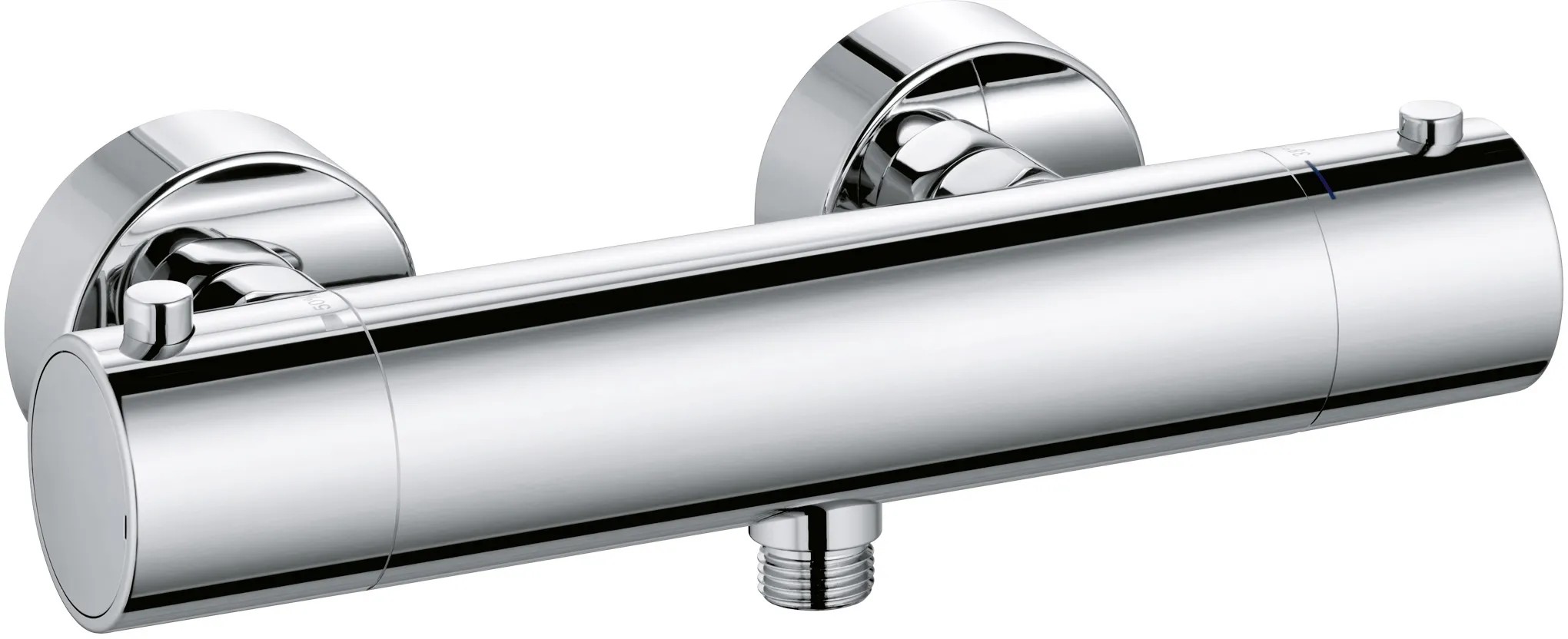 Kludi Objekta termosztátos zuhanycsaptelep. Falra szerelhető kivitel, névleges vízmennyiség: (B osztály), hőfokszabályzó kar 38°C-ra beállított. Zárószeleppel, 50% vízmennyiség-határoló reteszgombbal, visszafolyásgátlóval. Szűrő, zuhanycsatlakozás G 1/2, P-IX 8049/IB, DIN-DVGW-BM-0037.