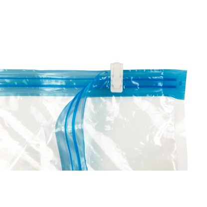 A ruhazsák átlátszó, így nem kell kinyitnia ahhoz, hogy megtekintse tartalmát. Az összenyomáshoz egyszerűen csak be kell tenni a ruhadarabokat a ruhazsákba. Ezután a kapocs segítségével szorosan le kell zárni a zsákot, majd egy porszívóval vagy kézi pumpával ki kell szívni belőle a levegőt. A csomag három ruhazsákot tartalmaz, ebből két darab 90 cm x 56 cm (H x Sz) méretű, egy darab pedig 110 cm x 70 cm (H x Sz) méretű.