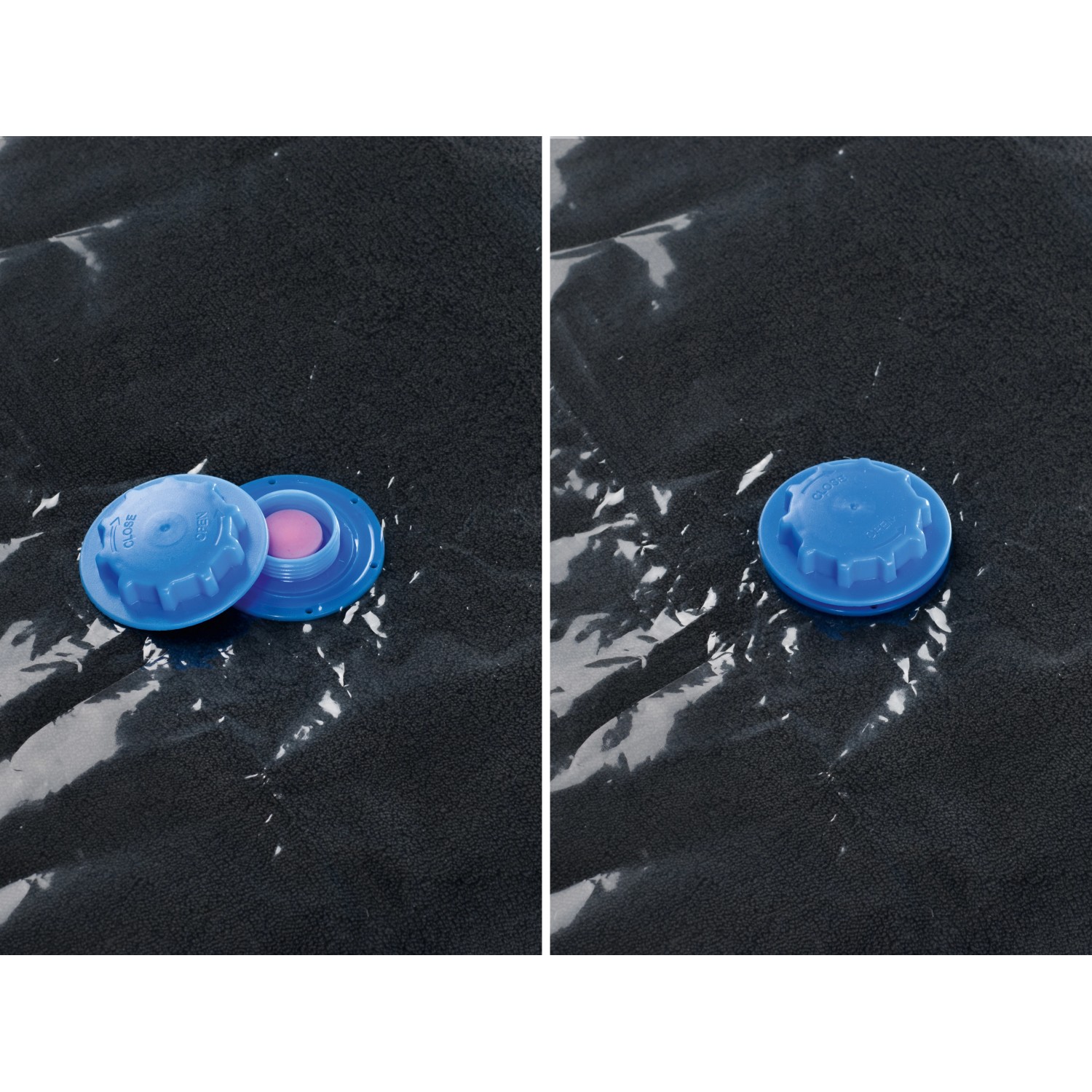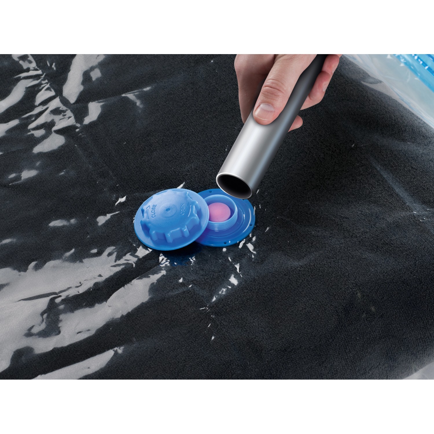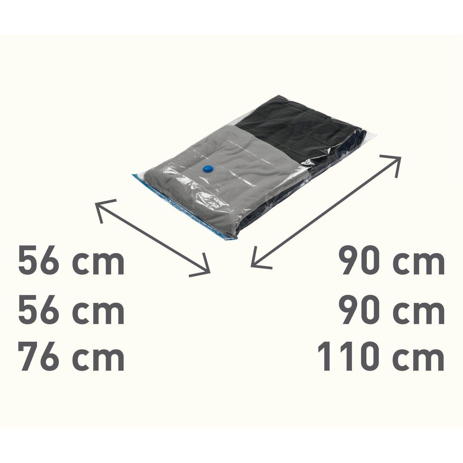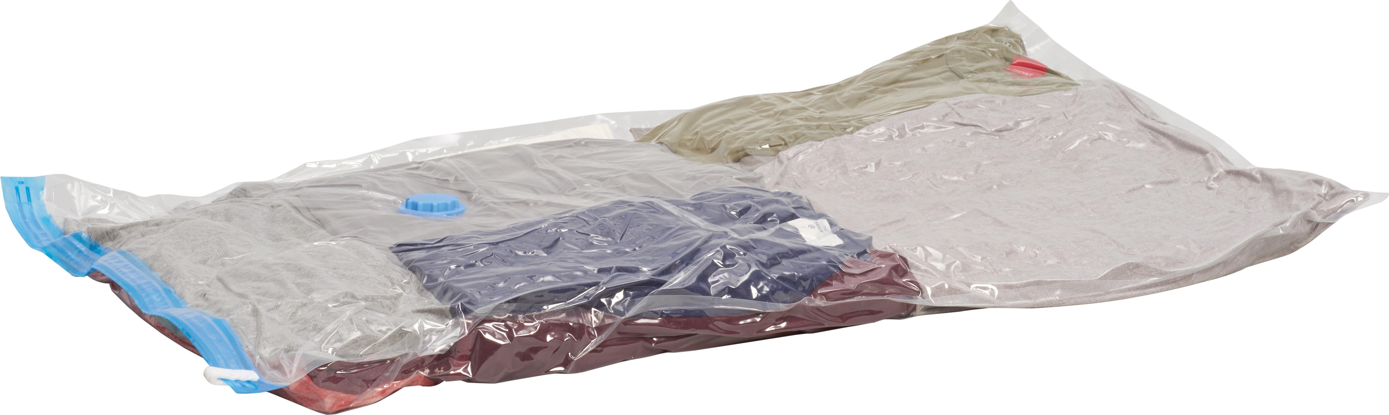 A praktikus vákuumos ruhazsákkészlet szezonális ruházat és egyéb textíliákat tárolására alkalmas. A vákuumozásnak az az előnye, hogy helytakarékosan és gyűrődés nélkül tárolhatja ruháit. A zsákból való kivétel után a textíliák ismét felveszik eredeti térfogatukat. A helyhiány megszüntetése mellett a ruhazsák védi a ruhákat a por, a molyok és a nedvesség ellen.