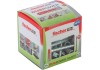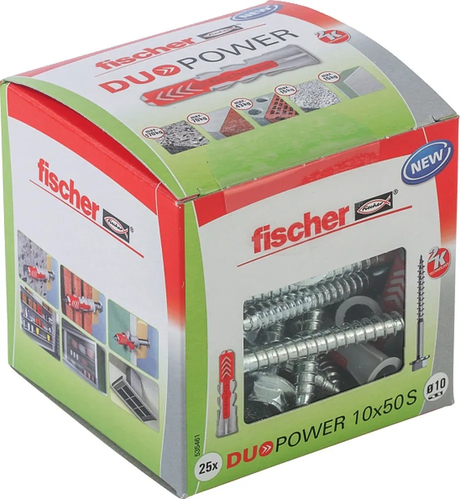 A Fischer Duopower 2 komponensének köszönhetően nagyon jó tartást biztosít. A kiváló minőségű nejlonból készült szürke komponens az építőanyagtól függően automatikusan aktiválja a legjobb tartáshoz szükséges működési elvet (terpesztés, szétnyitás). A piros komponens táguló szárnyai elősegítik a biztos terpesztést, és további biztonságot nyújtanak a szürke komponens mellett. Végül a csavar egyszerű behajtása és megfelelő meghúzása következik. A csavar nem húzható túl. A dübel fejénél kialakított perem megakadályozza, hogy a dübel becsússzon a furatba. A Duopower a legjobb választás, ha például falra szerelt szekrények, falipolcok, tükrös szekrények, szerszámtartó falak, nehéz tükrök és ruhásszekrények rögzítésére kerül sor.