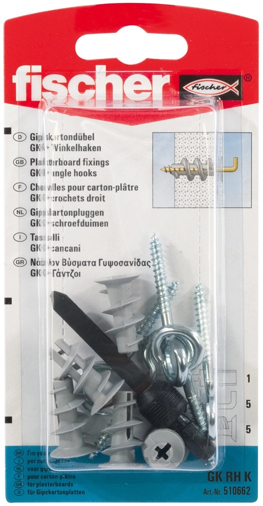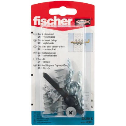 A GK RH gipszkarton dübel kiváló minőségű nylonból készül. Előszerelésnél a dübel akkus csavarozóval a behajtószerszám segítségével csavarozható be, a fal síkjáig. Legfeljebb 15 mm-es lapvastagságig nincs szükség előfúrásra. A FISCHER GK RH dübel csomagolása körkampót is tartalmaz. Ezáltal alkalmas a képek, lámpák és elektromos berendezések gyors és biztonságos felrögzítésére.