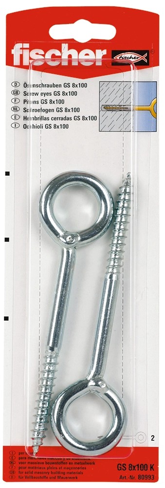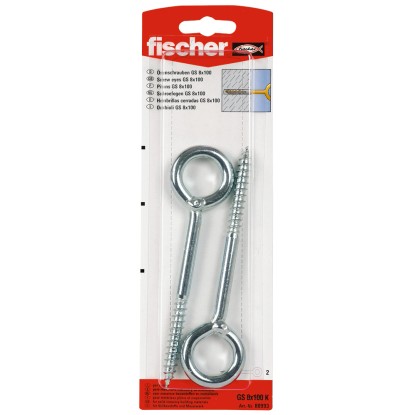 A fischer GS 8 szemescsavar galvánhorganyzott acélból készült. A kiváló minőségű hegesztett csatlakozás megakadályozza, hogy a szem szétnyíljon, így még nagyobb biztonságot nyújt. A fischer SX 10 dübellel együtt a szemescsavar betonba és falazatba való rögzítésre alkalmas. A Fischer GS szemescsavar ideális kötelek, láncok vagy ruhaszárító kötél rögzítésére.