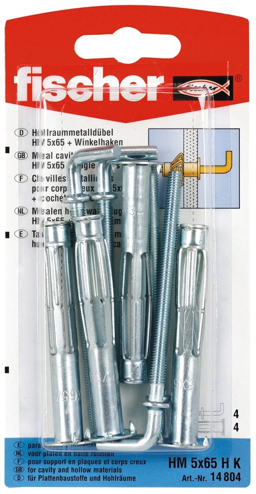 Fischer üregdübel HM 5 x 65 HK fém L rögzítőhoroggal 4 db