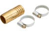 A megfelelő tömlőátmérő 25 mm (1"). A kiváló minőségű cső kopásálló, törésálló sárgarézből készült. Az anyag fokozott keménységű, stabil és robusztus. A csomag két bilincset és egy javítócsövet tartalmaz.