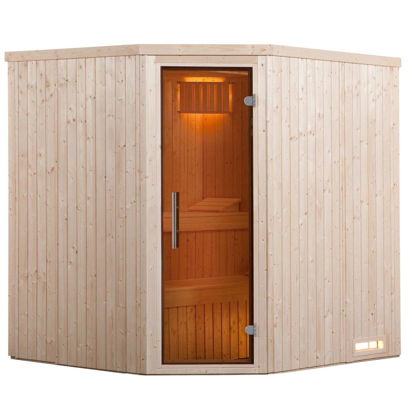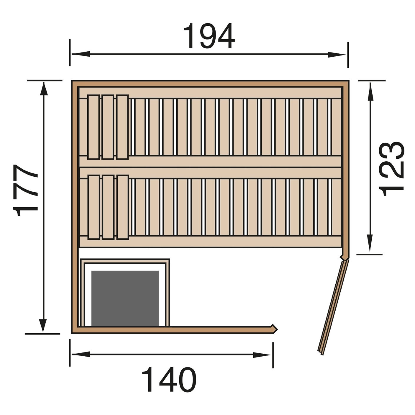 A szaunaház 45 mm vastag deszkákból áll, amelyek kellemes klímát és hosszú élettartamot biztosítanak. A dupla nút/féder összekötés a lehető legnagyobb sűrűséget és formastabilitást biztosítja. A kiváló minőségű és precízen megmunkált sarokcsatlakozások extra stabilitást garantálnak és egyúttal szép formájú szegőlécként is szolgálnak.