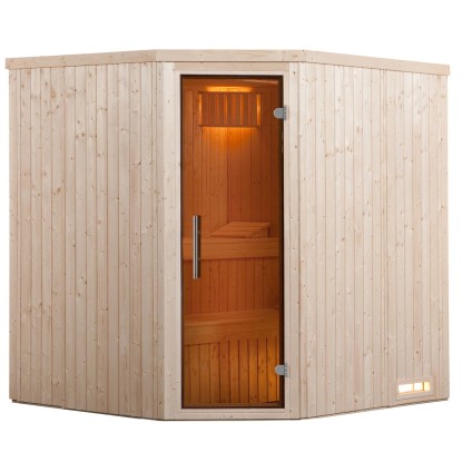A tömör fából készült Weka Kiruna szauna ideális ahhoz, hogy otthonában élvezhesse egy szauna kellemes melegét. Intelligens beltéri koncepciójának köszönhetően a szaunázás erősáramú csatlakozás nélkül is lehetséges - ebben az esetben egy 230 V-os csatlakozás is elegendő.