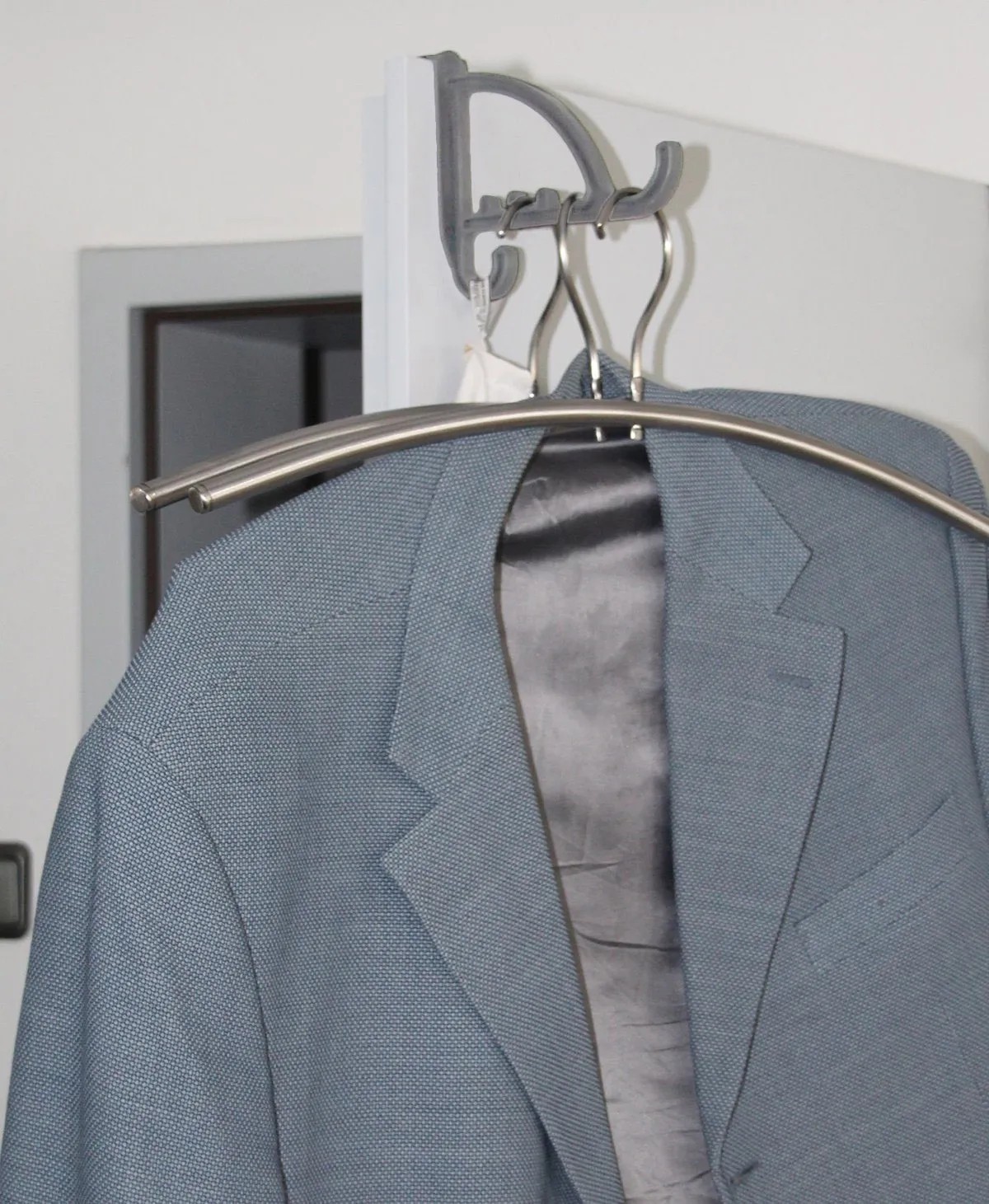 A műanyagból készült sokoldalú ajtóra szerelhető akasztó stabil, és ruhaakasztókhoz is alkalmas.