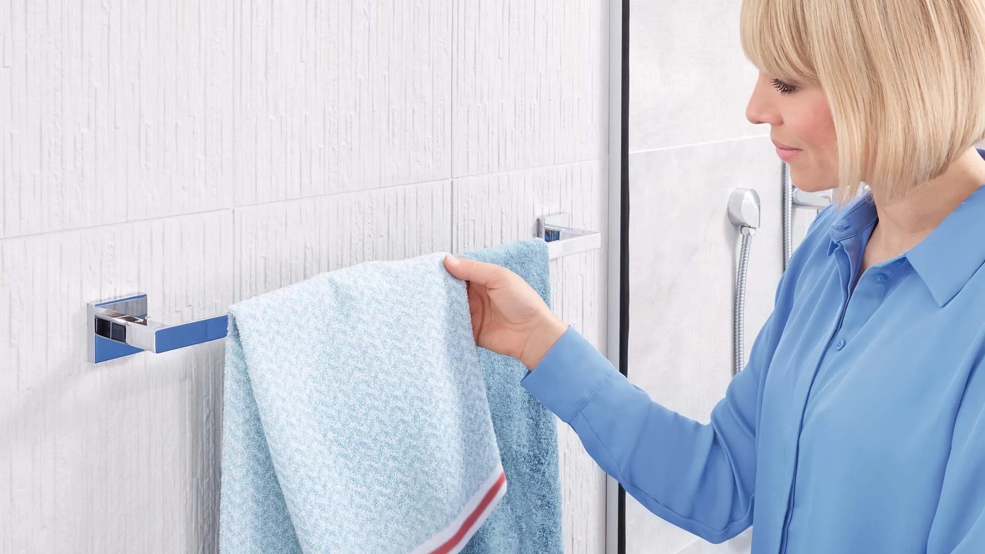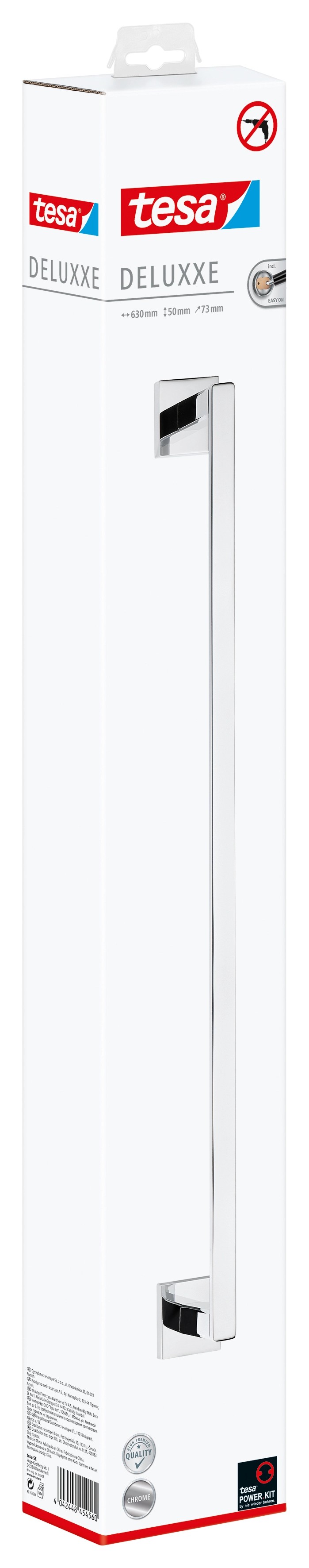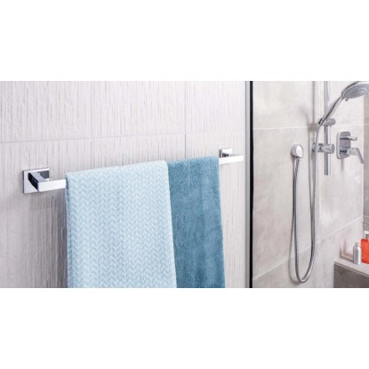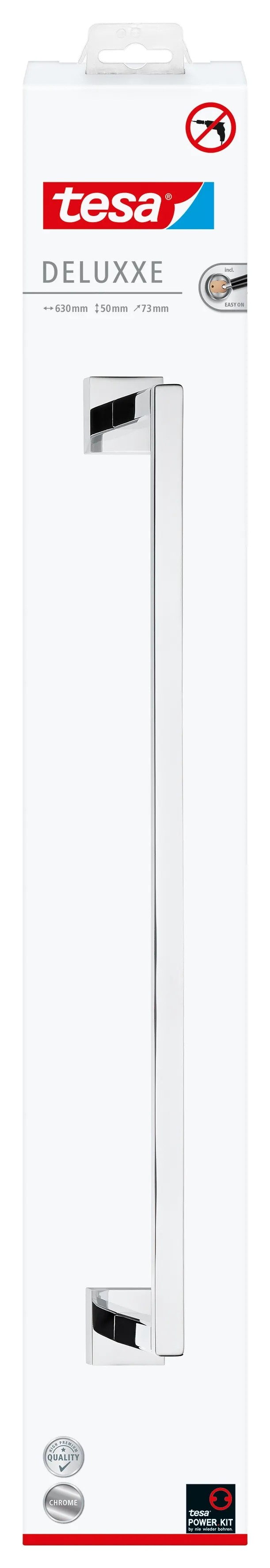 A Tesa Deluxxe termékcsaládba tartozó fürdőszobai termékek a gyönyörű formatervezést a minőséggel és a funkcionalitással ötvözik. Modern, krómozott megjelenésükkel minden fürdőszobába vagy vendégvécébe illenek. Ezek a praktikus fürdőszobai termékek ráadásul rozsdamentesek is. A Tesa Deluxxe törölközőtartó rúddal a törölközők mindig kéznél lesznek. Két kéztörlő vagy egy nagy fürdőlepedő számára alkalmas.