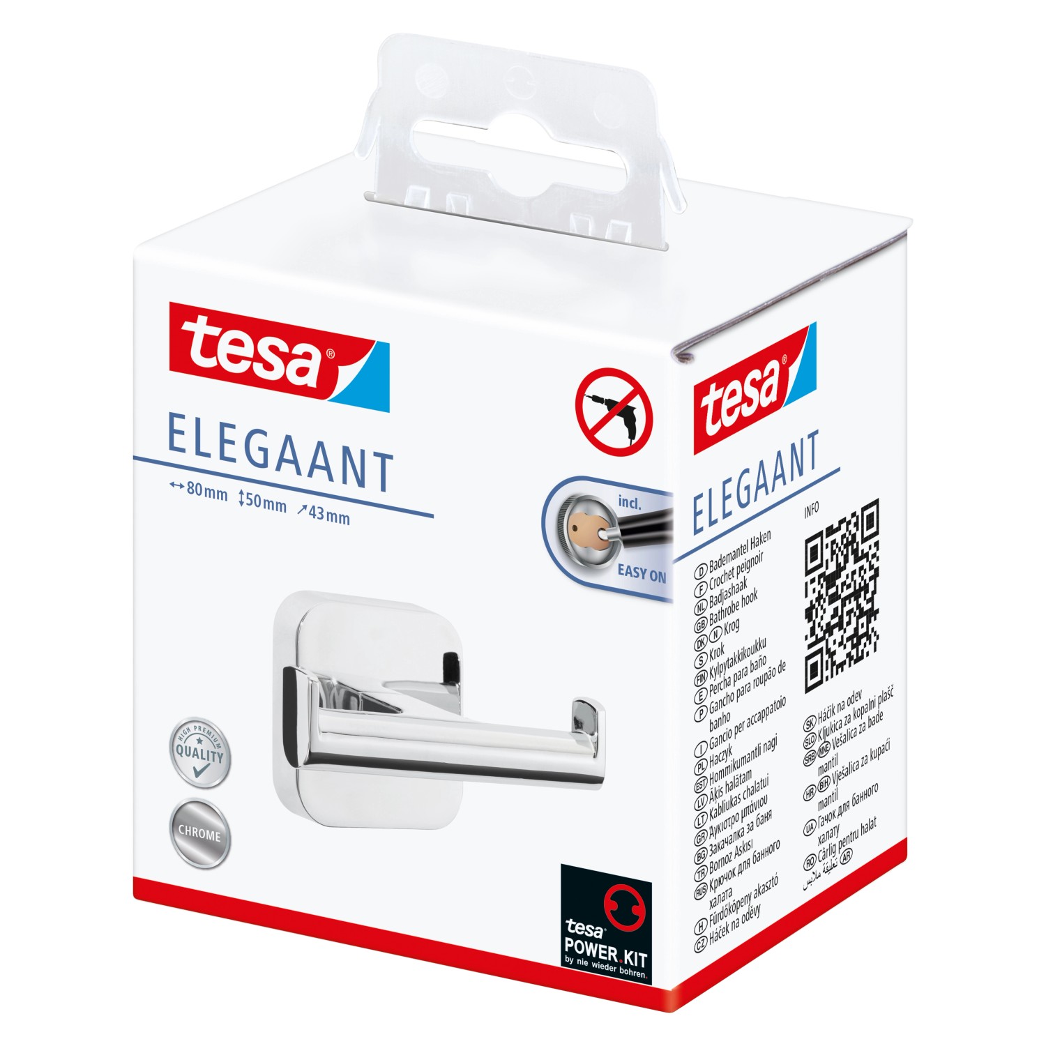 A Tesa Elegaant fürdőszobai termékek minden fürdőszobát vagy vendég WC-t feldobnak, és a nagyszerű megjelenés és a funkcionalitás kombinációjával nyűgöznek le. Ráadásul a praktikus fürdőszobai termékek rozsdamentesek. A helytakarékos Tesa Elegaant kettős akasztó 2 dekoratív felakasztási lehetőséget kínál törülközőinek vagy fürdőköpenyének.