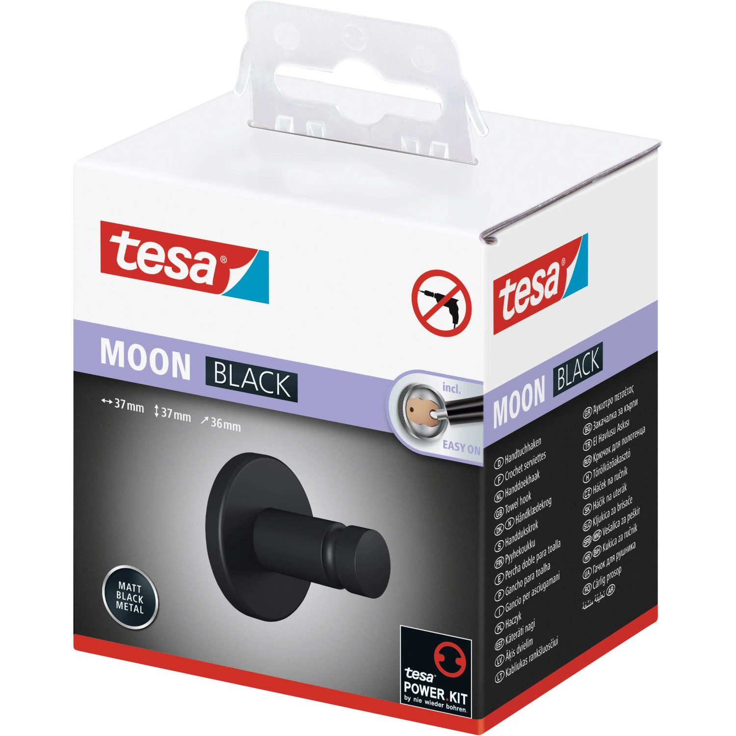 tesa Moon akasztó fekete matt ragasztóval