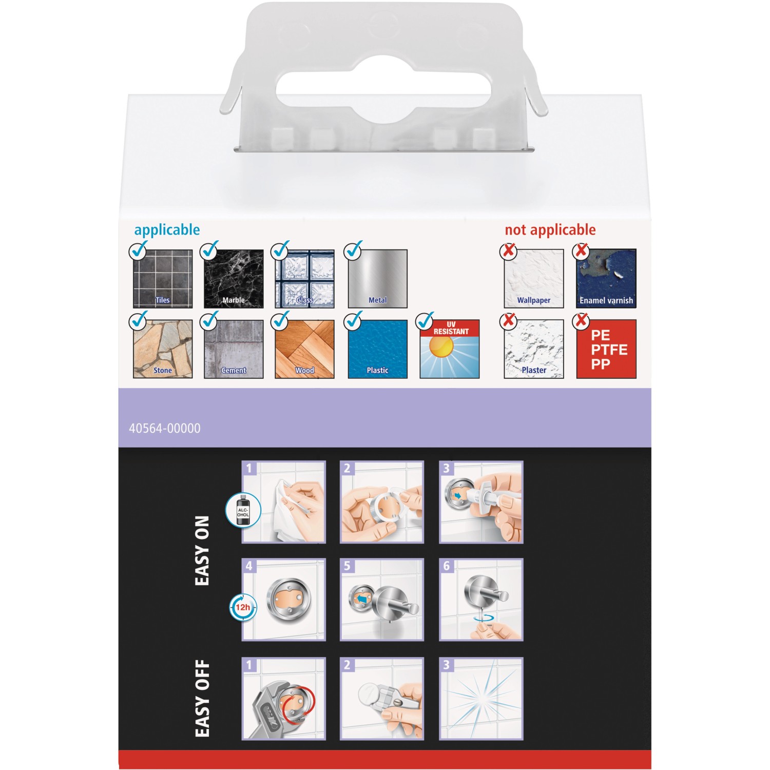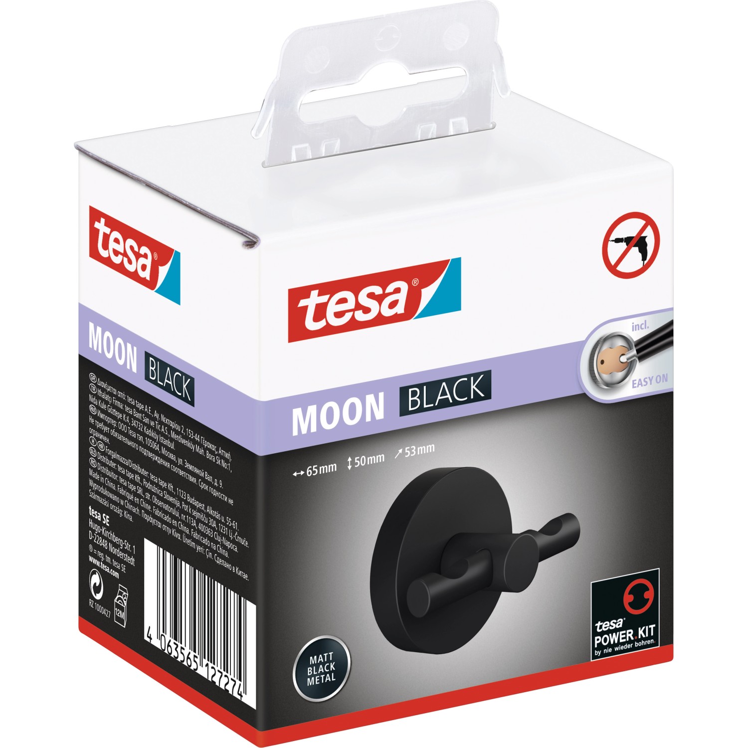 Minimalista megjelenés: A fekete matt, felragasztható Tesa Moon Black fürdőköpeny fogas állandó helyet biztosít a fürdőköpeny számára a fürdőszobában, és egyben trendi kiegészítő is. Mindegy, hogy ipari stílus, scandi stílus vagy purista kialakítás - harmonikusan illeszkedik az összképbe. Fúrás nélkül rögzíthető anélkül, hogy a falon vagy a csempéken bármilyen sérülést hagyna - mindez a speciális Tesa ragasztási megoldásnak köszönhető. A fogas nyom nélkül eltávolítható - a bérlők számára ideális. Tesa.Power.Kit Glue: Figyelem. Használatkor veszélyes, belélegezhető por képződhet. A port nem szabad belélegezni.