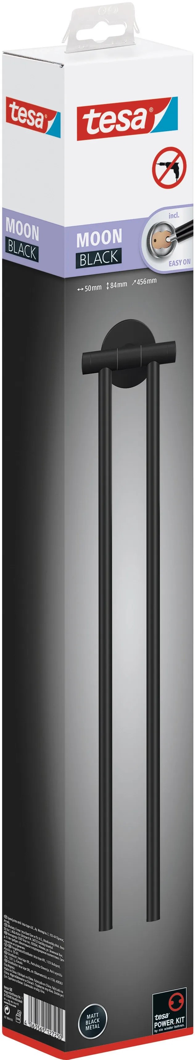 tesa Moon törölközőtartó 2 karos fekete matt ragasztóval