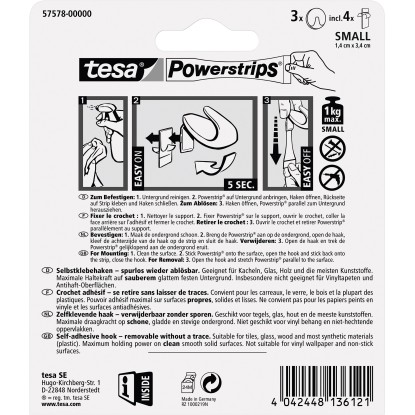 Nem alkalmas viniltapétához, tapadásmentes bevonatú felületekhez, hungarocellhez, habhoz vagy porózus anyagokhoz. A Tesa Powerstrips akasztó nyom nélkül eltávolítható a sima, kellően szilárd felületekről.
