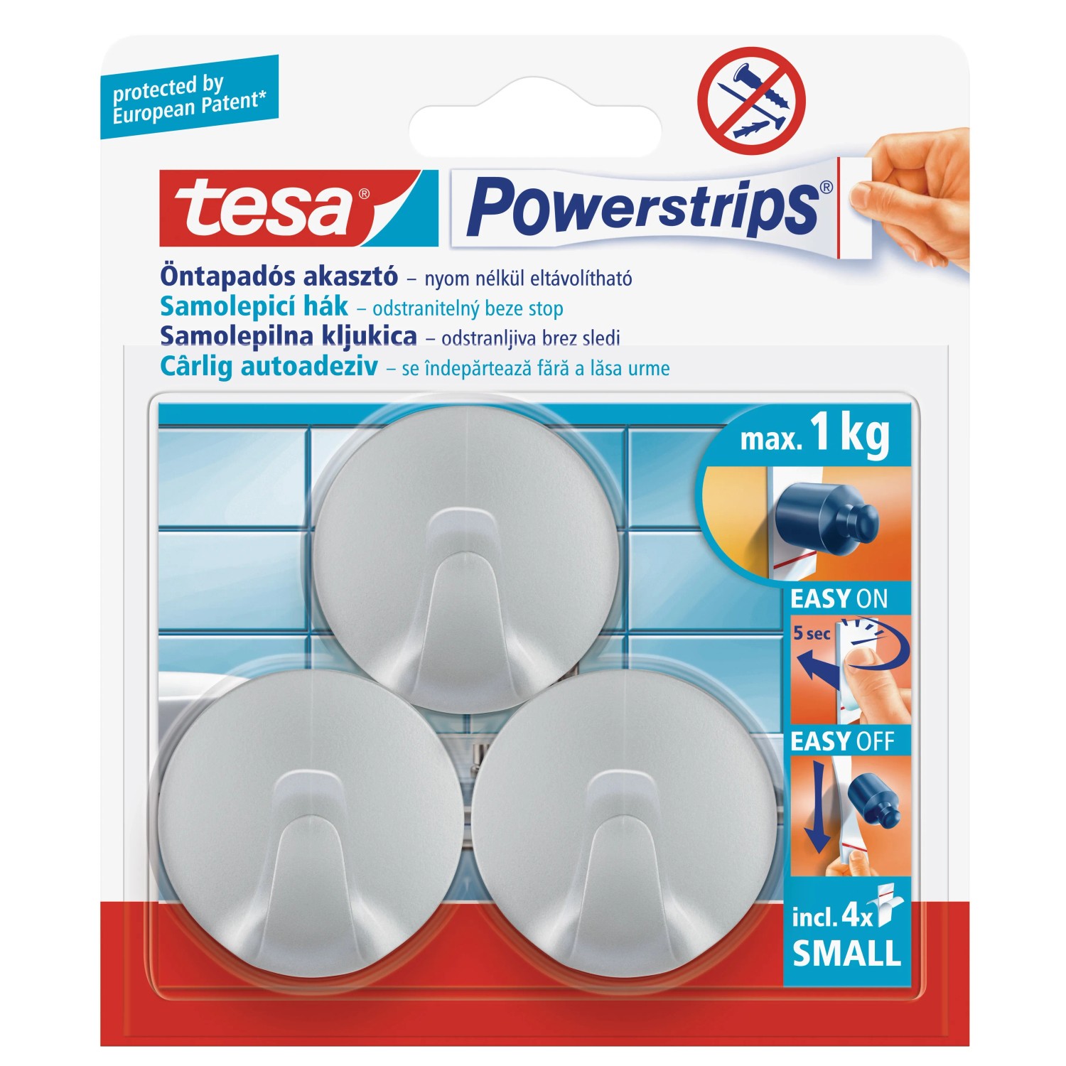 tesa Powerstrips nyom nélkül eltávolítható kis akasztó matt-króm 3 db 4 ragasztó