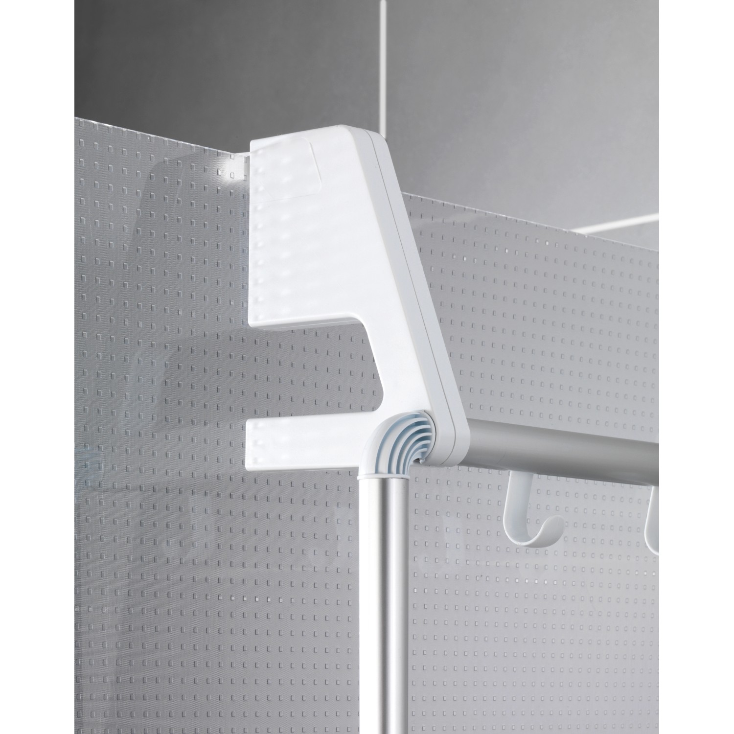 Ezzel a fürdőszobai tartóval az ajtó mögötti, falon lévő vagy a zuhanykabinon lévő kihasználatlan hely bonyodalmak nélkül praktikus akasztóvá alakítható.