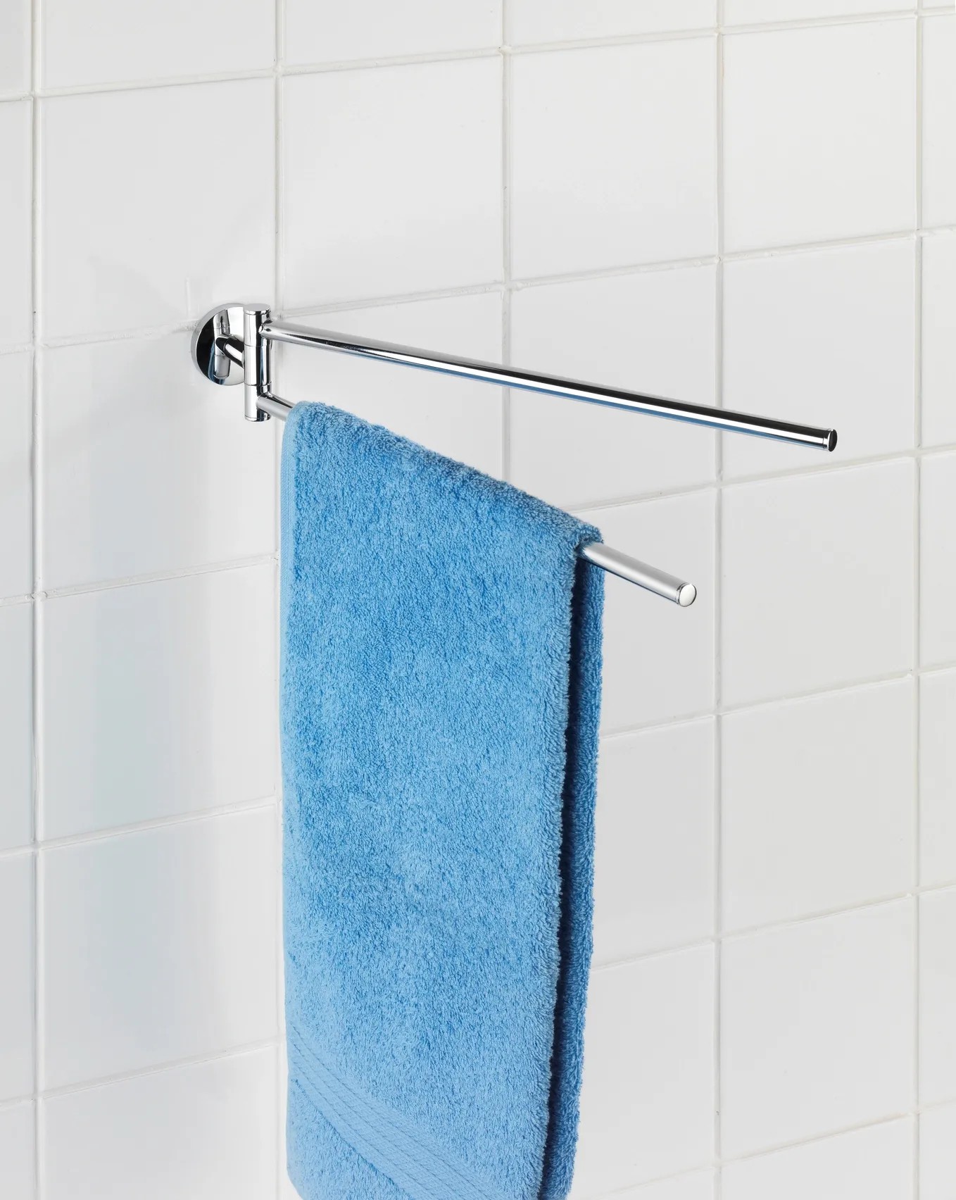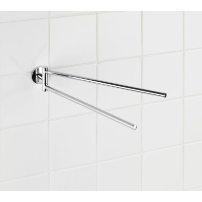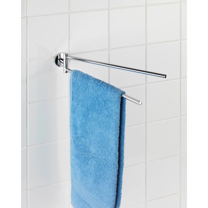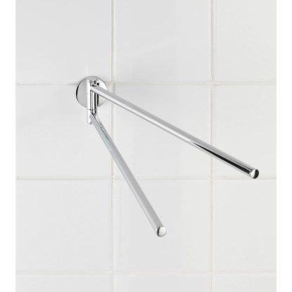 A két mozgatható karral felszerelt Cuba törölközőtartó elegendő helyet kínál a kéztörlőknek és a fürdőlepedőknek. A tartó mellé rögzítő anyagok is vannak mellékelve a falra történő szereléshez