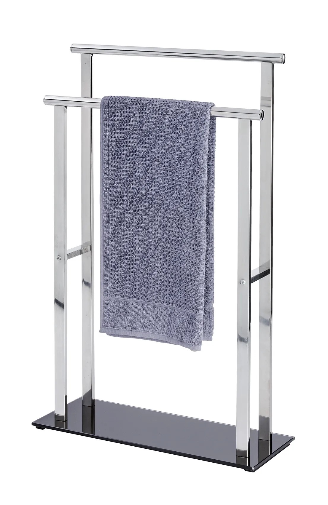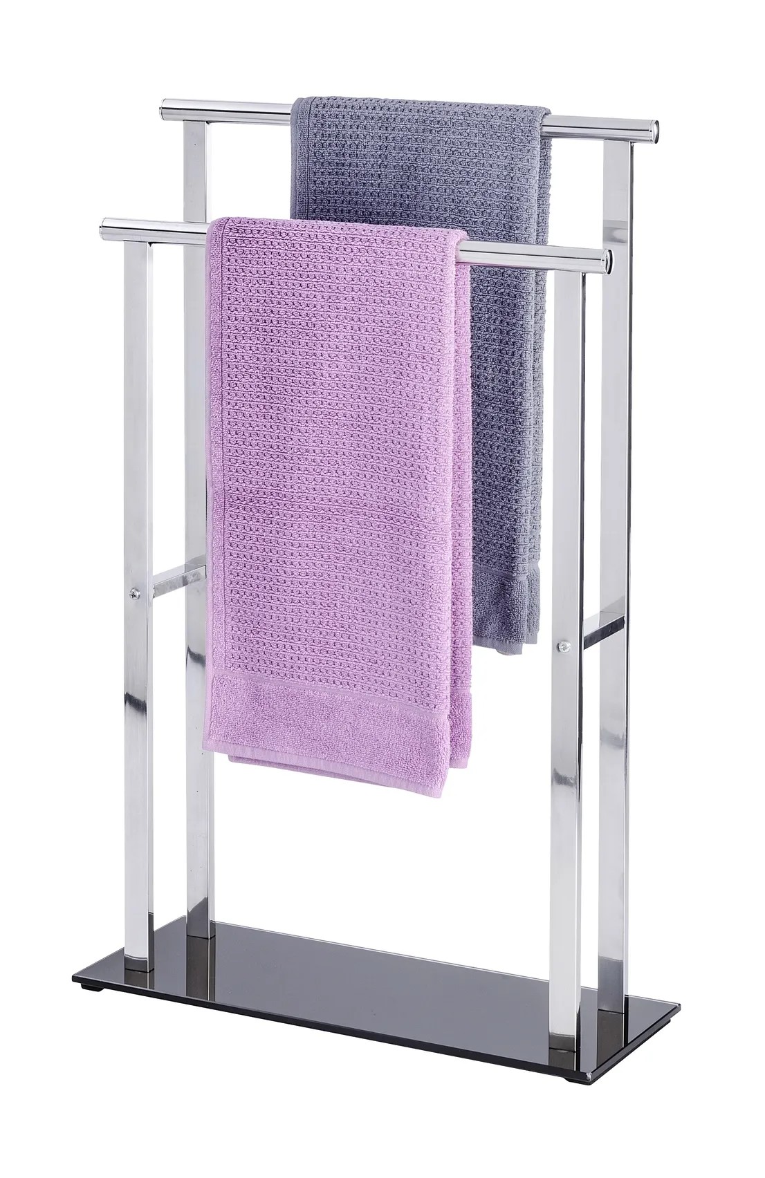 A Wenko Lava törölközőtartó állványt kerek és négyszögletes csövek modern kombinációja jellemzi.