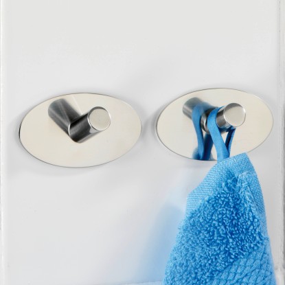 A minőségi, nehéz és masszív kivitelű Piceno fali akasztó rozsdamentes, fényes nemesacélból készül. A helytakarékos és ugyanakkor dekoratív megjelenésű univerzális akasztókat 2 db-os készletben szállítjuk. A divatos ovális kialakítású akasztó optimális törülközők, fürdőköpenyek, konyharuhák, edényfogók felakasztásához a fürdőszobában, a vendég WC-ben és az egész háztartásban. Felhelyezésük nagyon egyszerű. Egyszerűen húzza le a fóliát, és helyezze fel az akasztót.