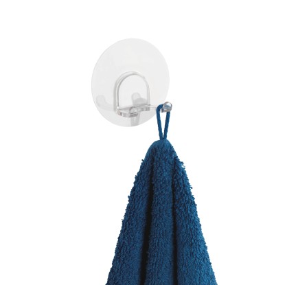 A Static-Loc Duo dupla fali akasztó biztosítja az erős tartást a háztartásban minden sima, nem légáteresztő felületen (pl. csempe, üveg, laminált fa panelek), és emellett trendi, átlátszó megjelenést kínál. Hogyan működik? Egyszerűen húzza le a védőfóliát, és nyomja az akasztót a kívánt helyre. A statikus feltöltődés révén a gumibevonatú korong rögtön feltapad. A jó dolog: A fali akasztó azonnal terhelhető és bármikor áthelyezhető. Az átlátszó megjelenés feltűnés nélkül beilleszthető bármilyen fürdőszobai vagy konyhai koncepcióba. A Duo akasztó révén a fürdőszobában és vendég WC-ben a kéztörlő, a törölköző és a fürdőköpeny mindig kéznél lesz a kívánt helyen. A nedves borotva is biztos helyet talál az akasztón. A fali akasztó jól mutat a konyhában is, és ideális a konyharuhák felakasztásához.
