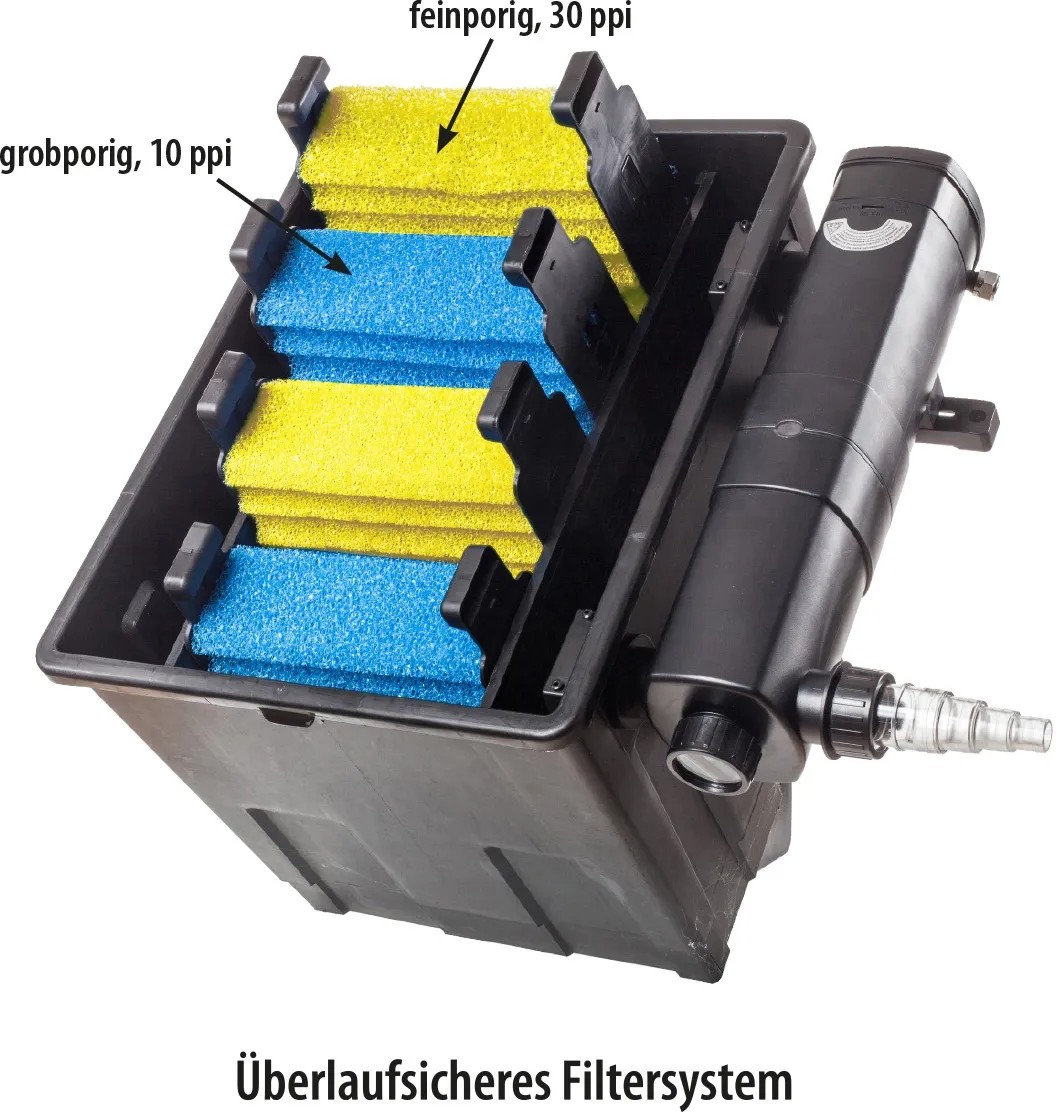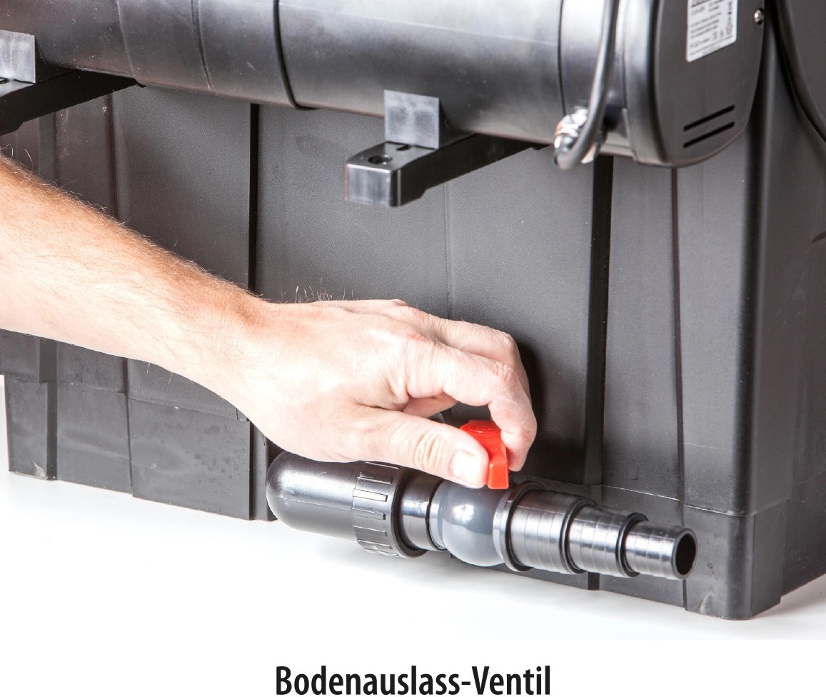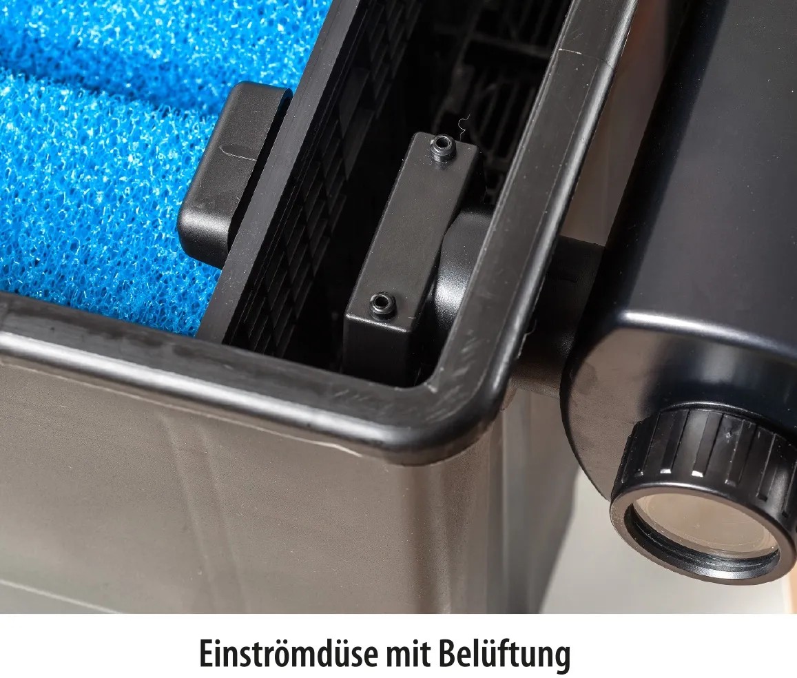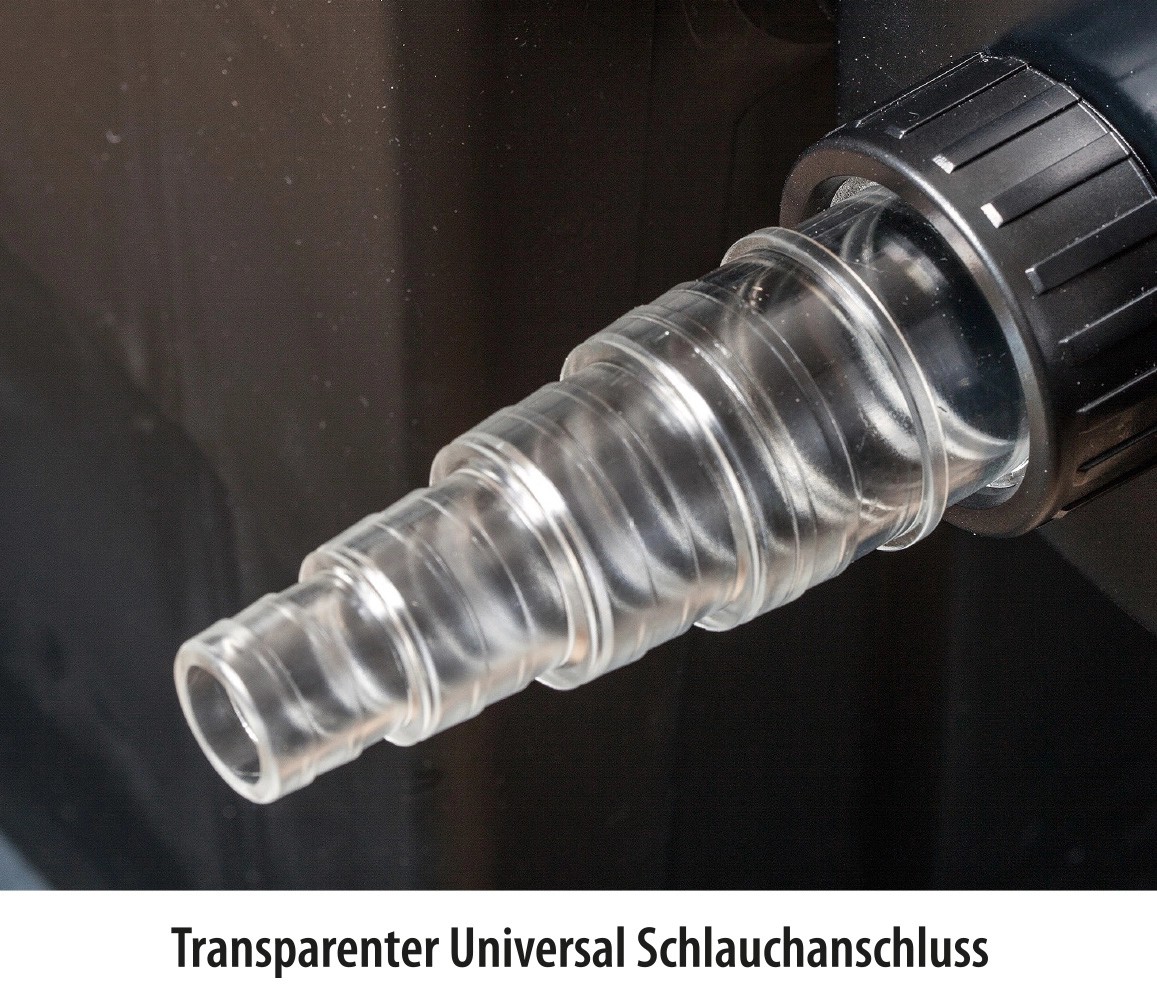 A Heissner külső szűrő ideális az összes, max. 16000 l űrtartalmű kerti tóhoz. Használata rendkívül egyszerű, ideális kezdő tóépítők számára is. A szett teljes, tartalmazza a szivattyút, a vízcsövet, illetve a többi kiegészítőt is. Használata alatt ajánlott a tavi élőlények ideiglenes eltávolítása. A beépített UVC-szűrő hatékonyan szünteti meg a víz zavarosságát.