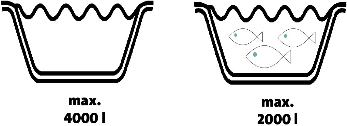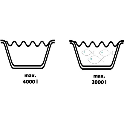 | Maximális tóméret (haltartás nélkül): | 4 000 l |