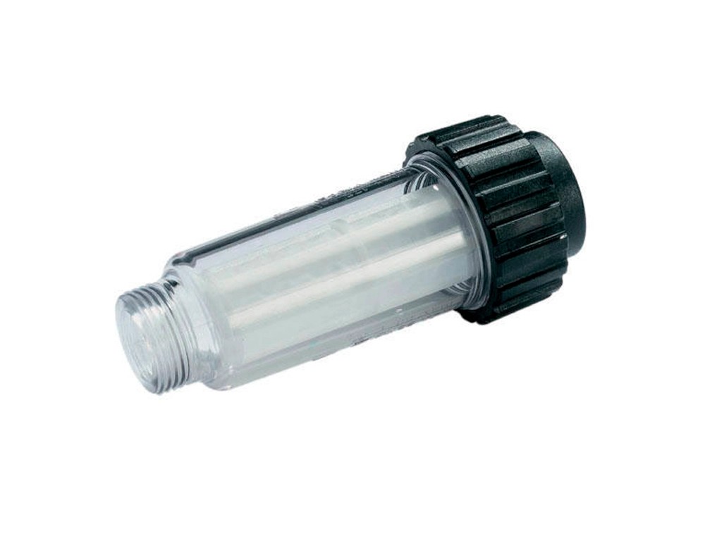 Vízszűrő magasnyomású mosóhoz. Megakadályozza, hogy a vízbe kerülő, szennyező részecskék a magasnyomású szivattyúba kerüljenek, azt károsítsák. Ezáltal biztosítja a gép hosszú élettartamát és megbízható működését.