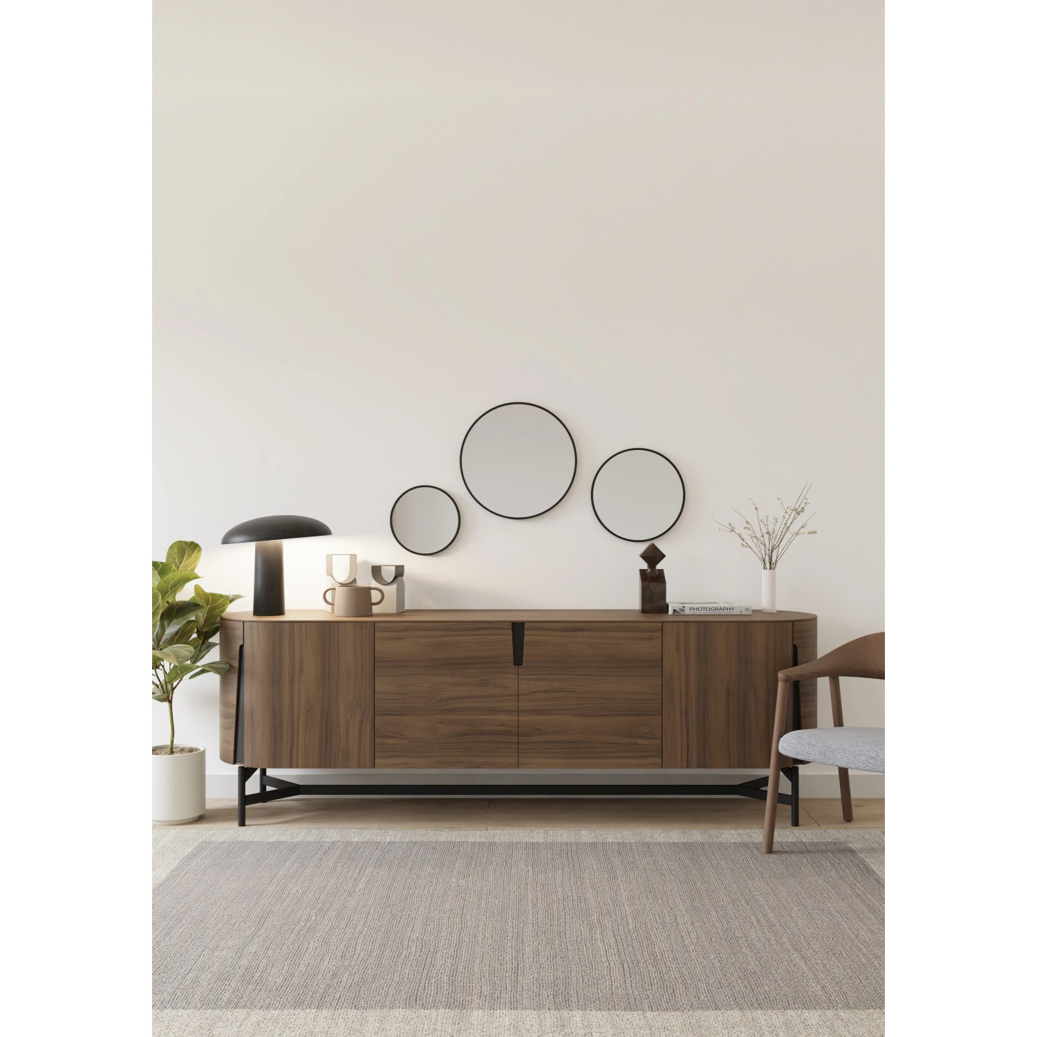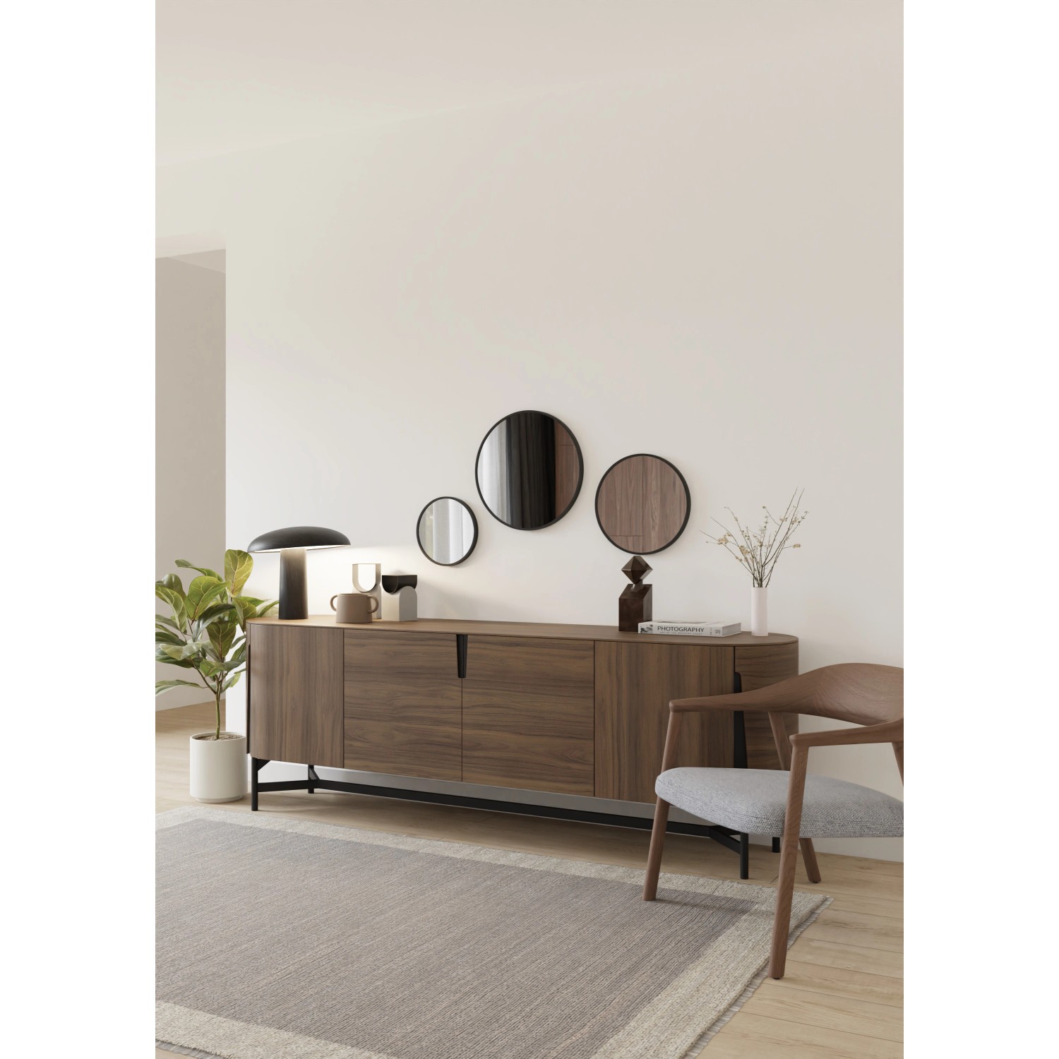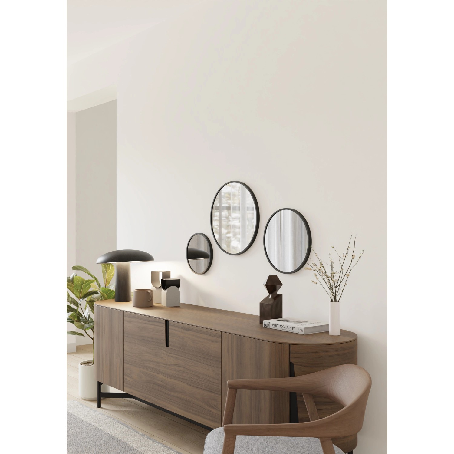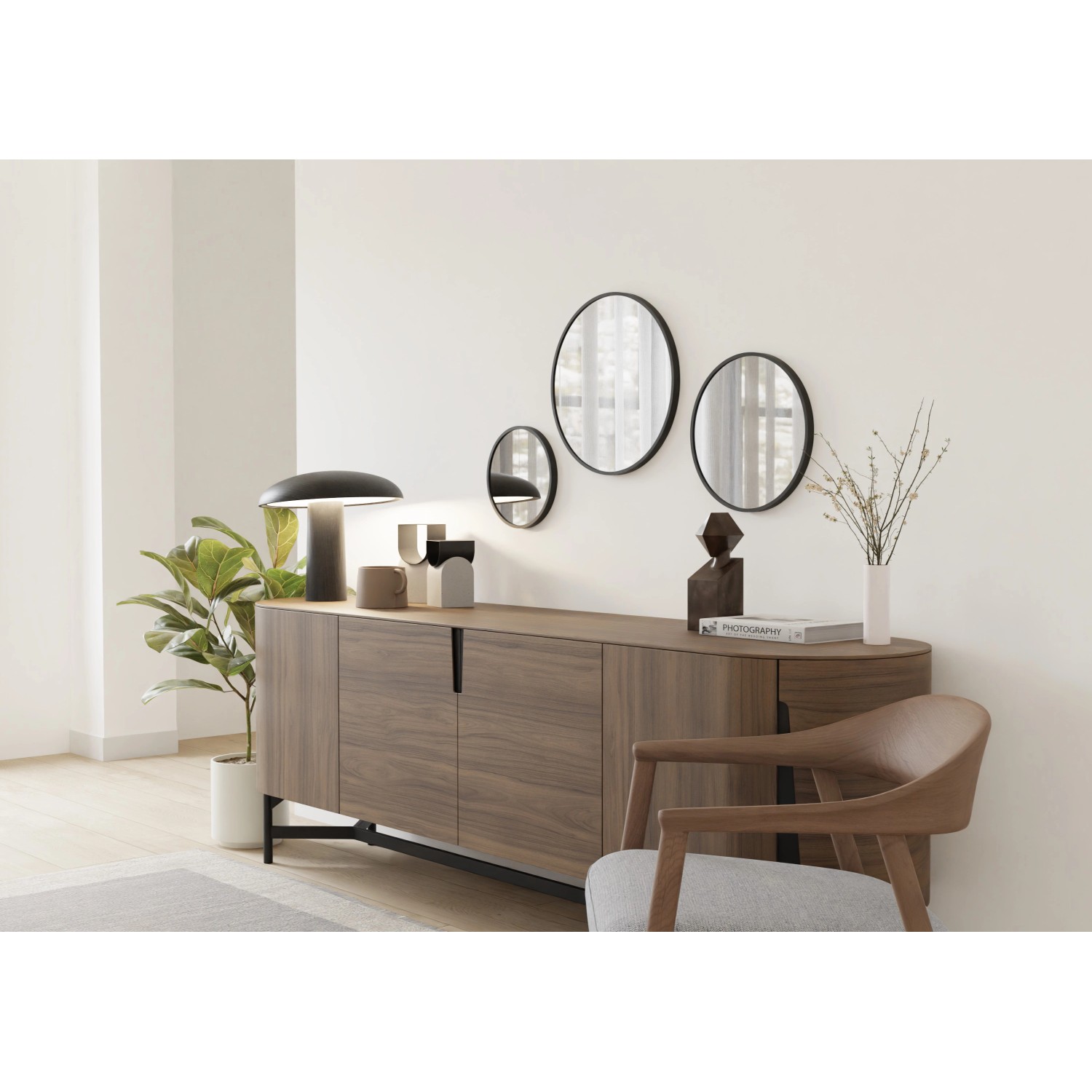 40 cm x 40 cm-es fekete fém keretes kerek tükör.