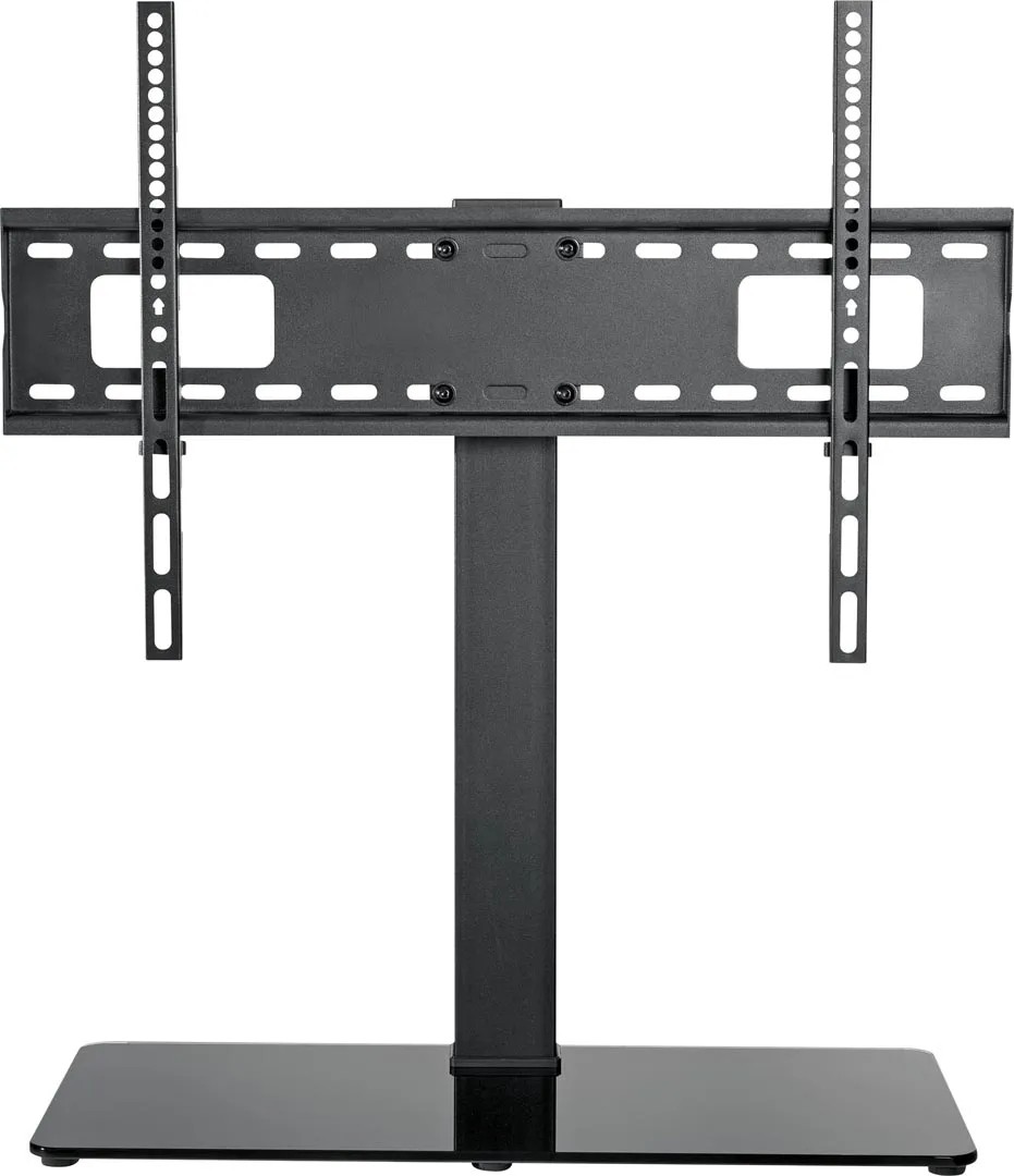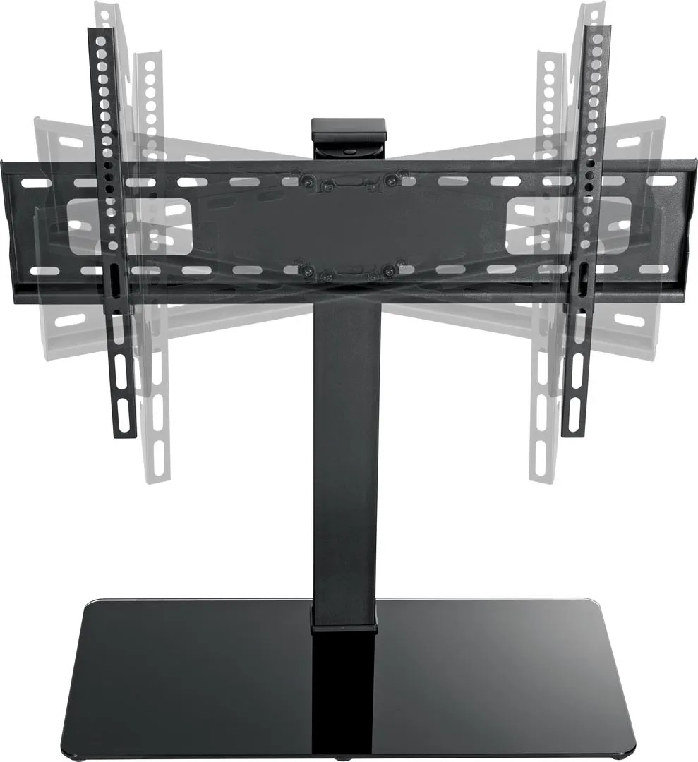 Üveg alaplappal ellátott Schwaiger állványunk síkképernyő rögzítésére alkalmas. A tartó jobbra és balra fordítható és rendelkezik egy praktikus kábelvezetéssel. Ezenkívül a talp mindig stabil és biztos tartást biztosít TV-jének a rendkívül robusztus, edzett biztonsági üvegből készült talpának köszönhetően és univerzálisan használható számos különböző képernyőmérethez és VESA szabványhoz.