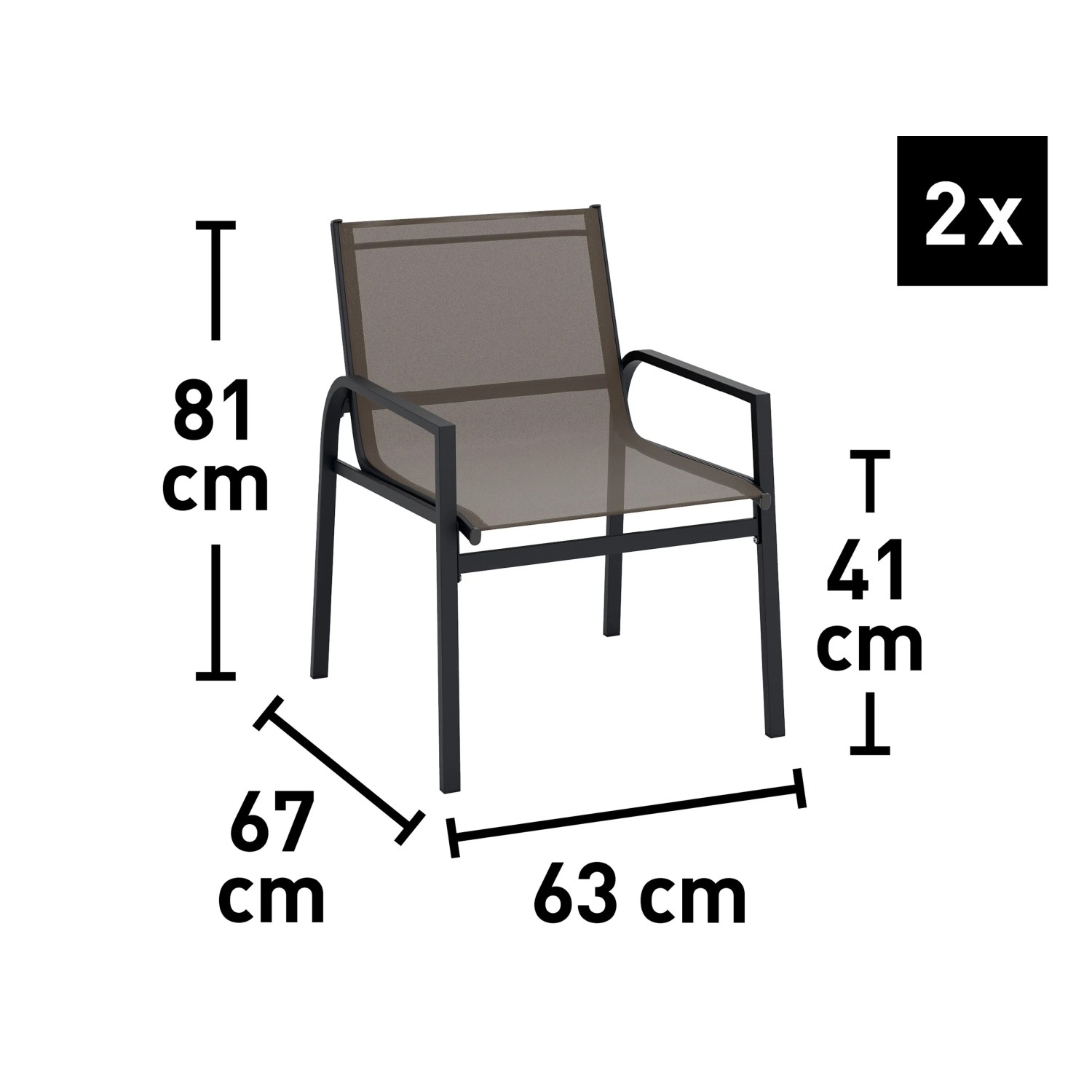 2 db karosszék 81 cm x 63 cm x 67 cm (Ma x Sz x Mé), ülésmagasság 41 cm, max. teherbírás 110 kg