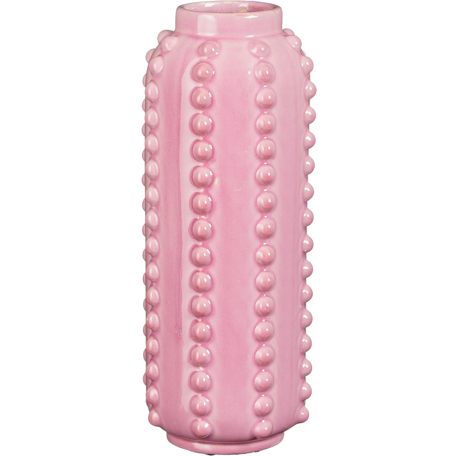 A Mica Decorations Boaz vázája élénk és stílusos kiegészítője bármilyen belső térnek. A rózsaszín váza robusztus agyagból készült, és oldalai bordázott szerkezetűek. A váza 100%-ban kézzel készült, így egyedülálló szemet gyönyörködtető látvány! A 30 cm magas és 11 cm átmérőjű váza virágokhoz, dekoratív ágakhoz vagy tollakhoz ideális. Tökéletesen kombinálható többszínű vázákkal vagy a Mica Decorations Boaz kollekciójába tartozó cserepekkel is.
