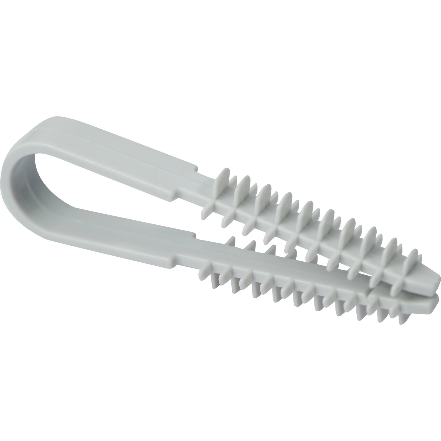 A műanyagból készült, világosszürke OBI beüthető kábelrögzítő hurok 3 mm és 13 mm közötti átmérővel rendelkező kábelek, csövek és vezetékek rögzítésére szolgál. A beüthető kábelrögzítő hurkot egyszerűen a falba előfúrt lyukba kell beütni, ahol a bordázás