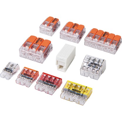15 x karos vezetékösszekötő, minden vezetéktípushoz, max. 4 mm², 3 vezeték