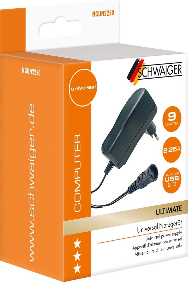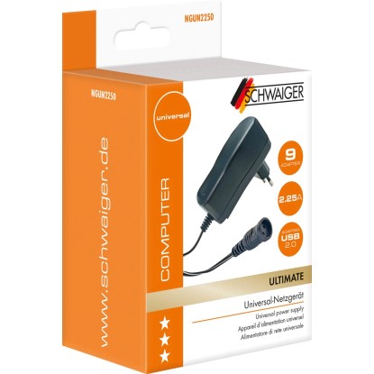 A hálózati adapter univerzális áramellátást biztosít hordozható eszközök számára. Az üzemállapotot egy LED jelzi a készülék tetején. A hálózati adapter kimeneti feszültsége stabilizált, és a beépített biztosíték túlmelegedés esetén automatikusan kikapcsolja a készüléket.