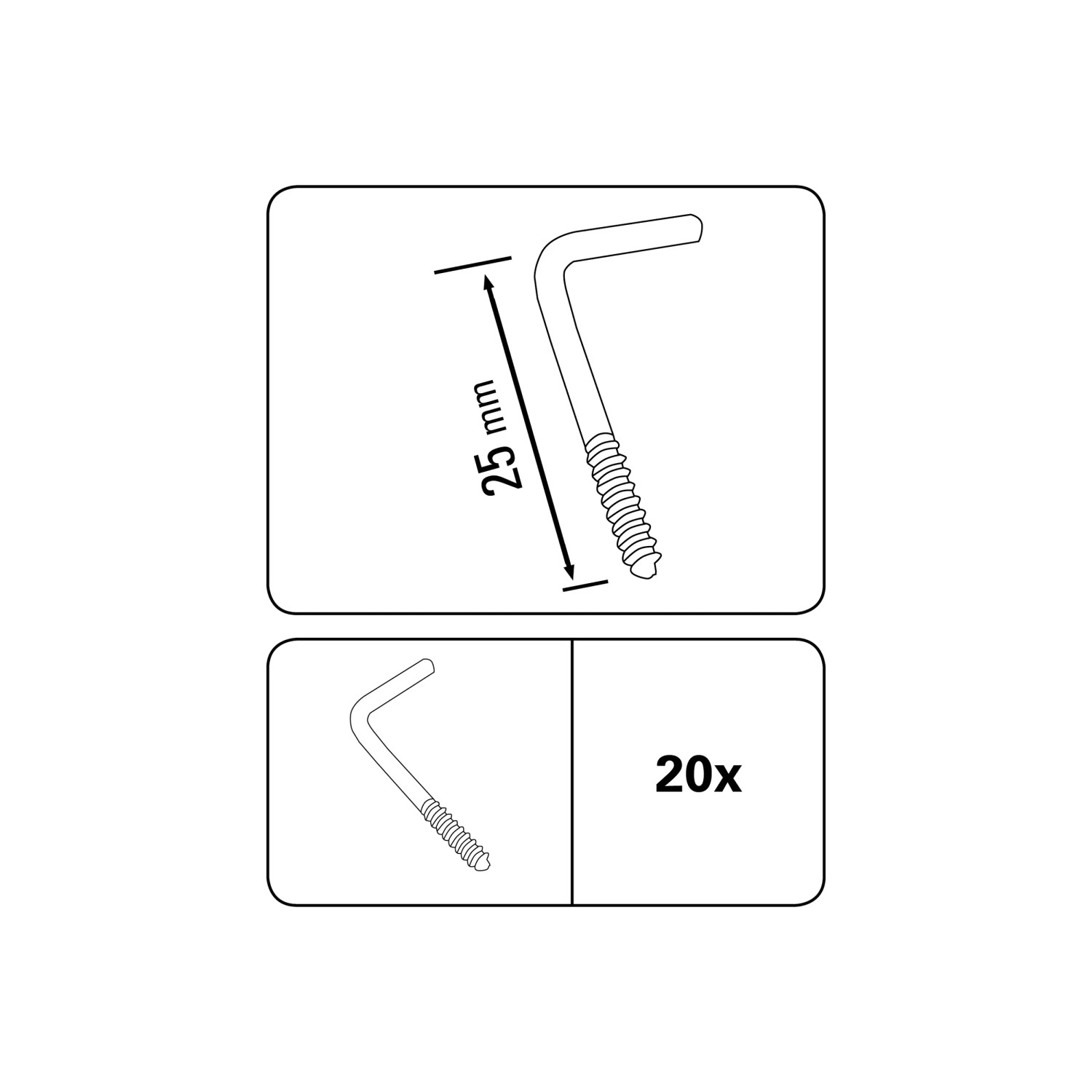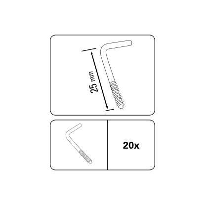 Gardinia csavaros kampó vitrázs tartozékokhoz, horganyzott, matt ezüst, 2,5 cm