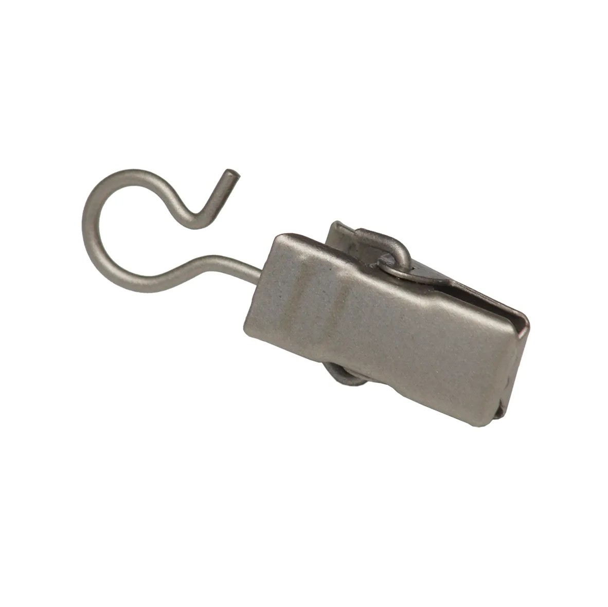 Ezüst szatén színű fémből készült kampó klippel. 10 darab csomagonként. Ideális kötélfeszítő készletekkel kombinálva. De máshol is rugalmasan használható. Tartós és stabil.