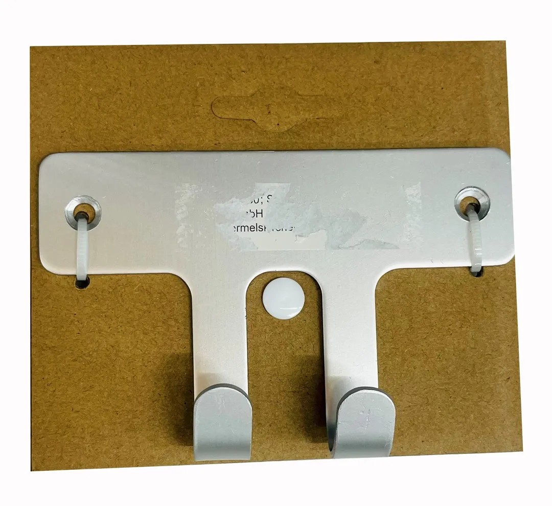 Dupla tartó törölközők, mosogatórongyok, fürdőlepedők és egyebek felakasztásához. Szereléshez fúró szükséges. Tartalmazza a szerelési anyagot.