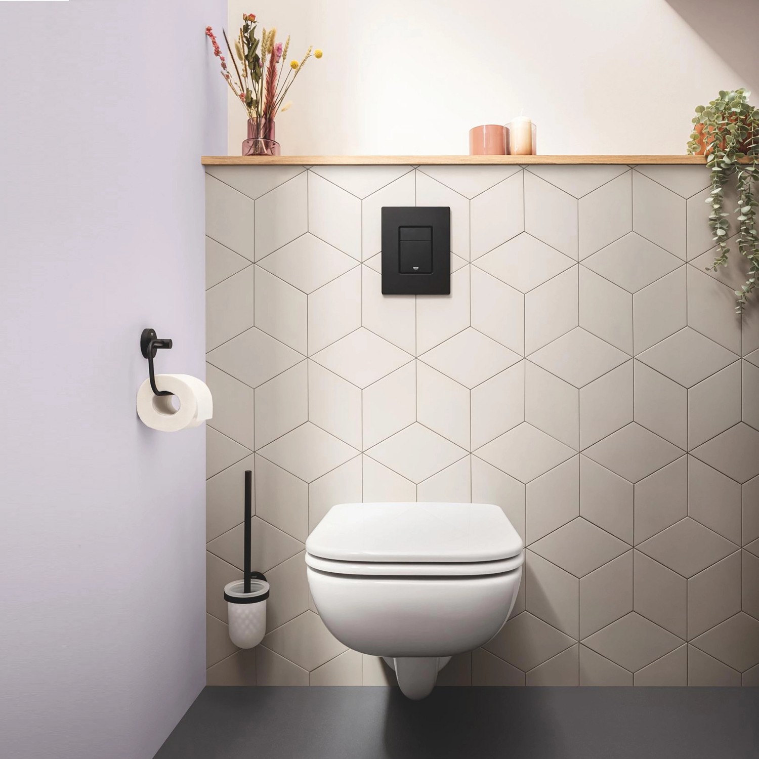 Elegáns, szögletes megjelenésével a stílusos, matt fekete GROHE Even öblítőlap kiegészíti a modern fürdőszobai esztétikát, de olyan teljesítménnyel is rendelkezik, amely bármilyen beállítást tökéletesít. Normál méretű (156 x 197 x 10 mm), GROHE Long-Life felülettel rendelkezik, amely tartós és nagyon könnyen tisztítható. És még környezetbarát is. A kettős öblítési rendszer lehetővé teszi 3 vagy 5 literes öblítési mennyiség kiválasztását (vagy 3 és 4,5 literes egyes kerámiatesteknél), és a kis gombbal leállíthatja a teljes öblítést. A GROHE Water Saving öblítési technológia tökéletes áramlást biztosít, ugyanakkor akár 50%-kal csökkenti a vízfogyasztást. A szabványos átdolgozó tengelyt igénylő beszerelés egyszerű és szerszámmentes. Függőleges vagy vízszintes illeszkedés közül választhat. Ideális a GD2 tartályos Solido szerelőelemeinkhez. A GROHE Even öblítőlap - egy olyan fürdőszobai frissítés, amely egyensúlyban tartja a kifinomult stílust a magas szintű teljesítménnyel!