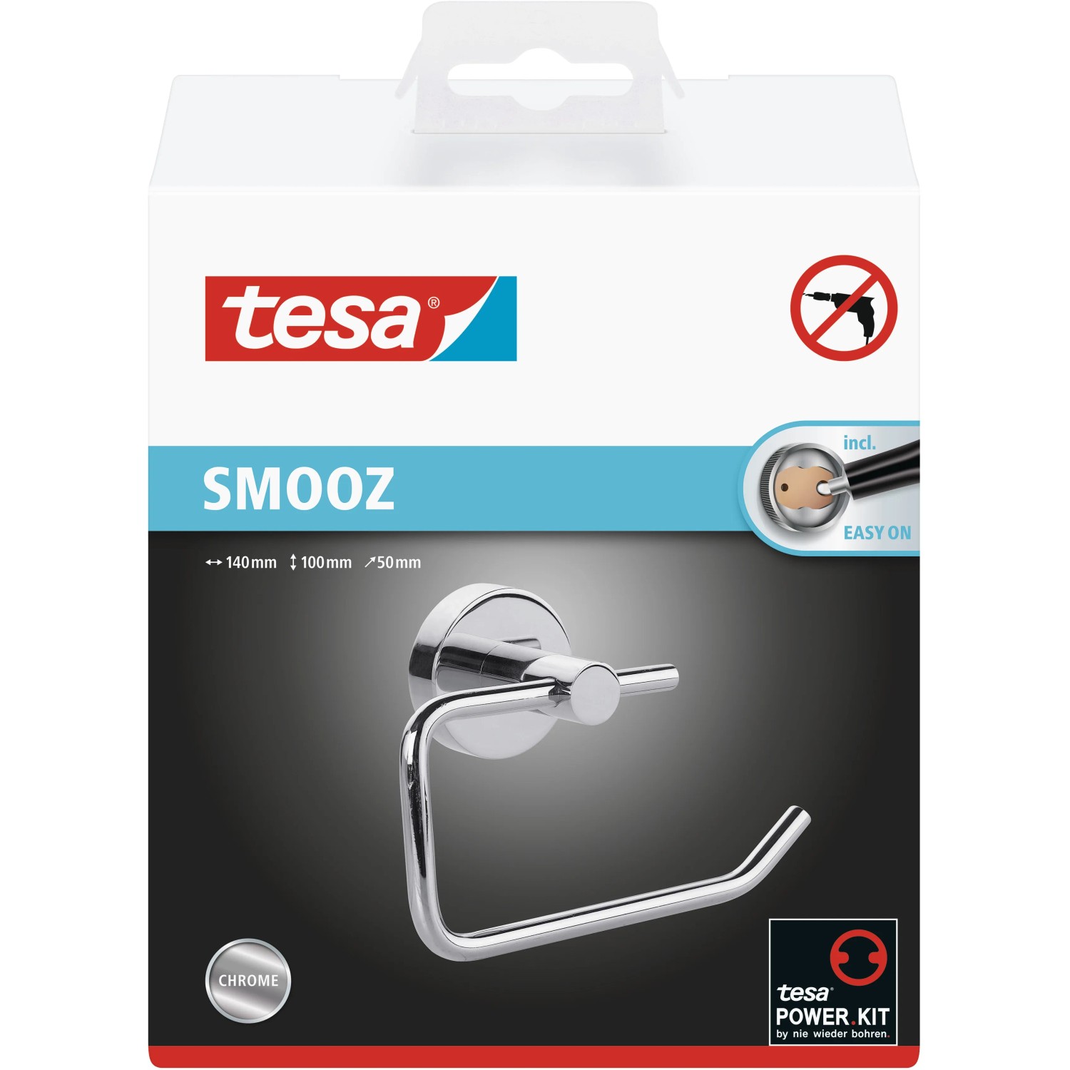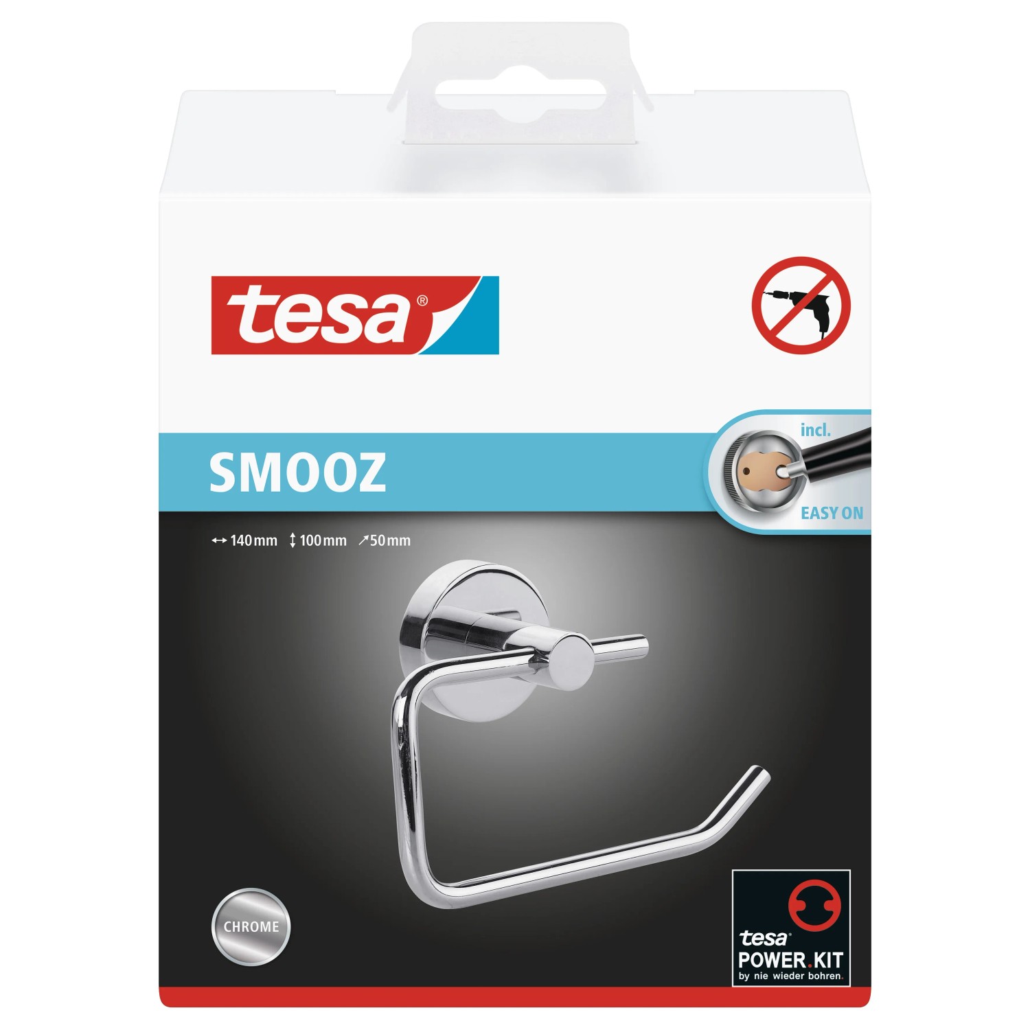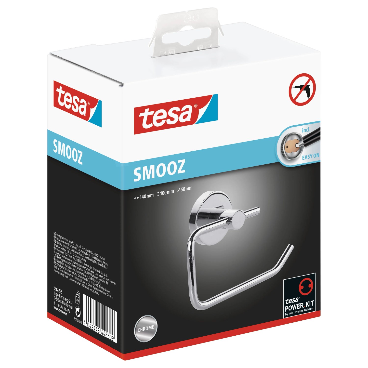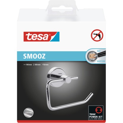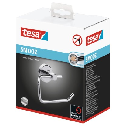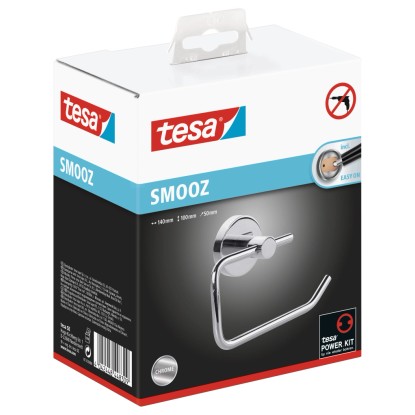 A tesa Smooz WC-papír tartó modern kialakításával minden fürdőszobát feldob, és látványos elemként szolgál. A kerek formák gyönyörűen harmonizálnak a króm megjelenésű fényes felülettel. A WC-papír tartóval a WC-papír mindig biztonságosan a kívánt helyen lóg a falon.
