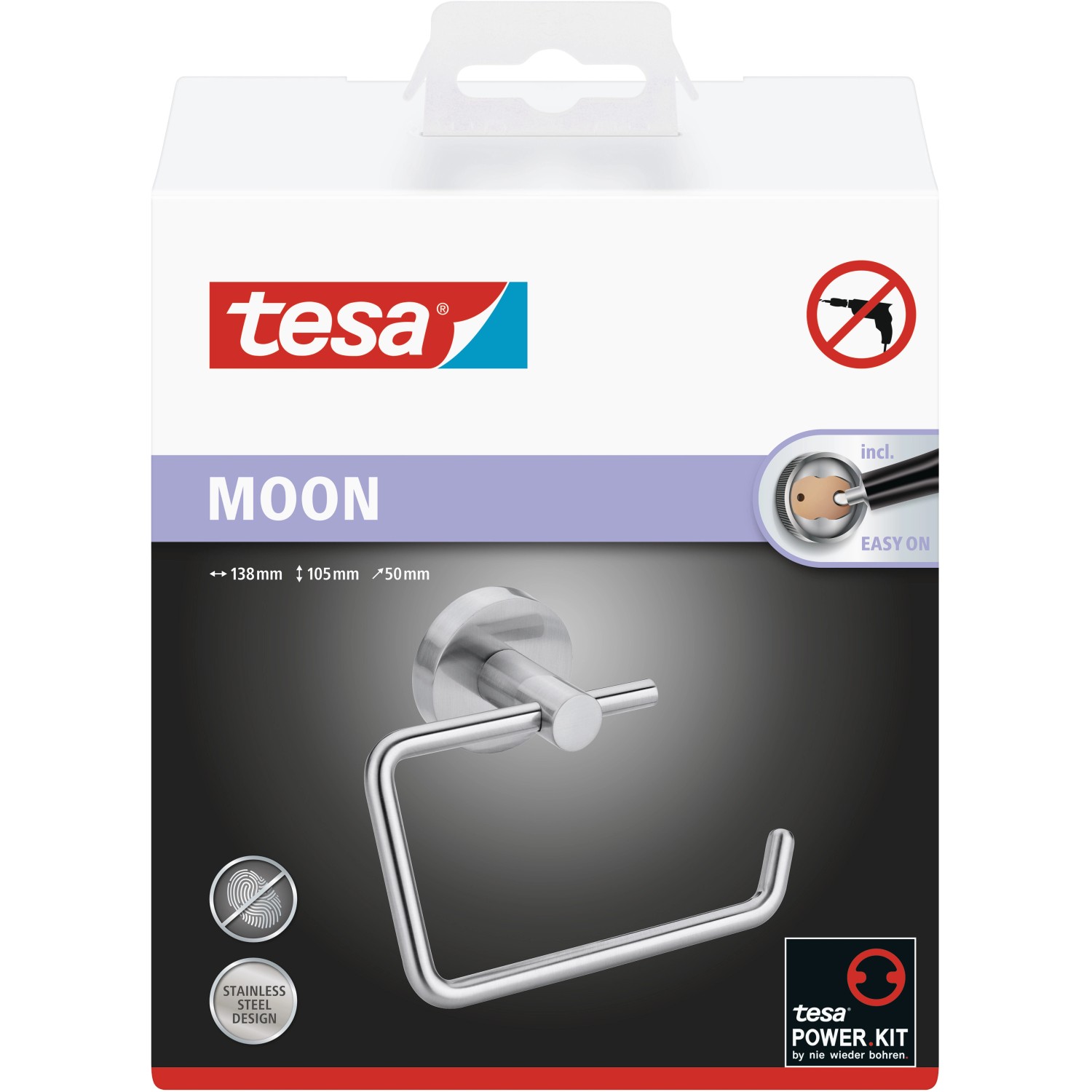tesa WC - papír tartó Moon rozsdamentes acél megjelenés
